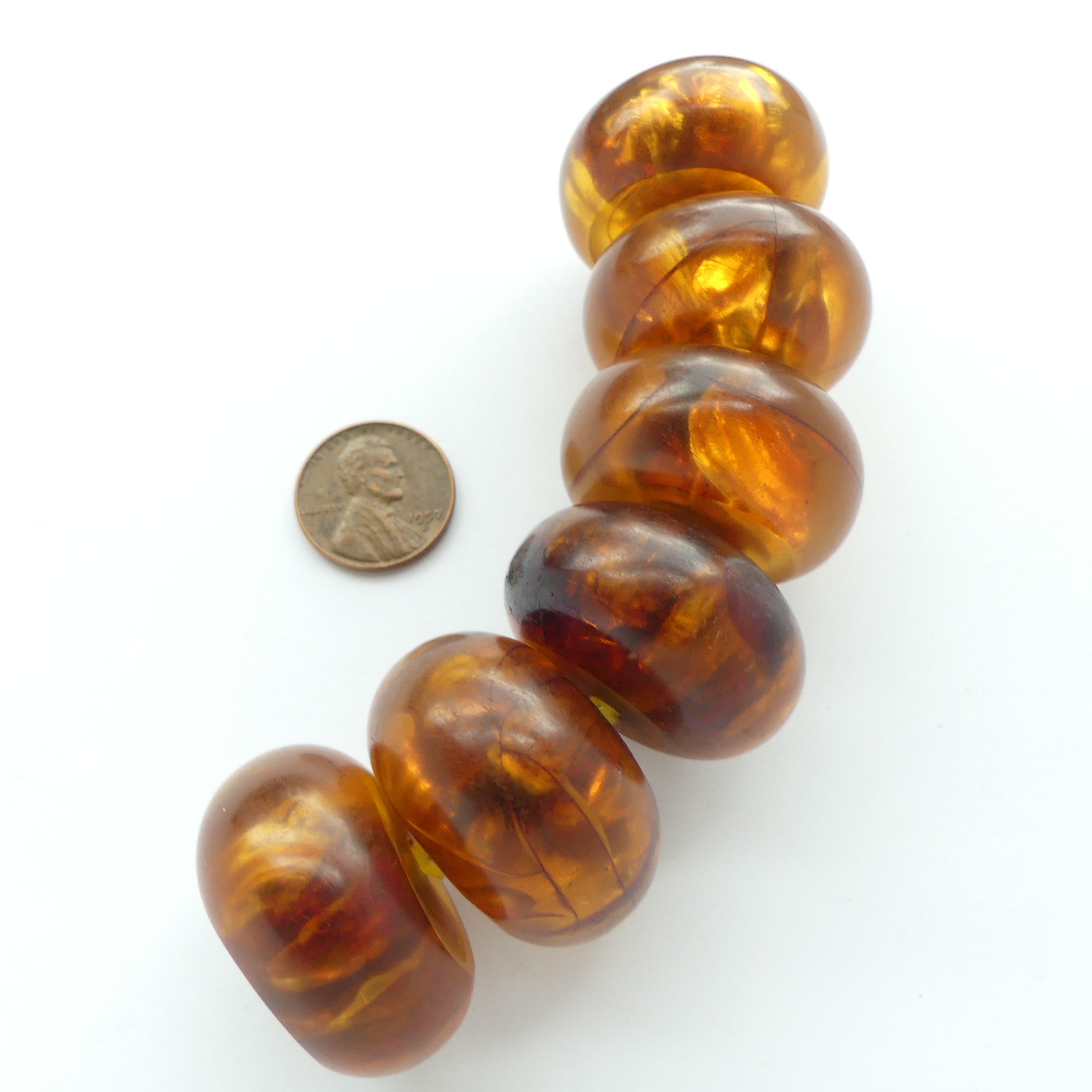 African Amber, Very Rare Translucent Marbled Oblate Beads, 17x32mm, Sold Individually