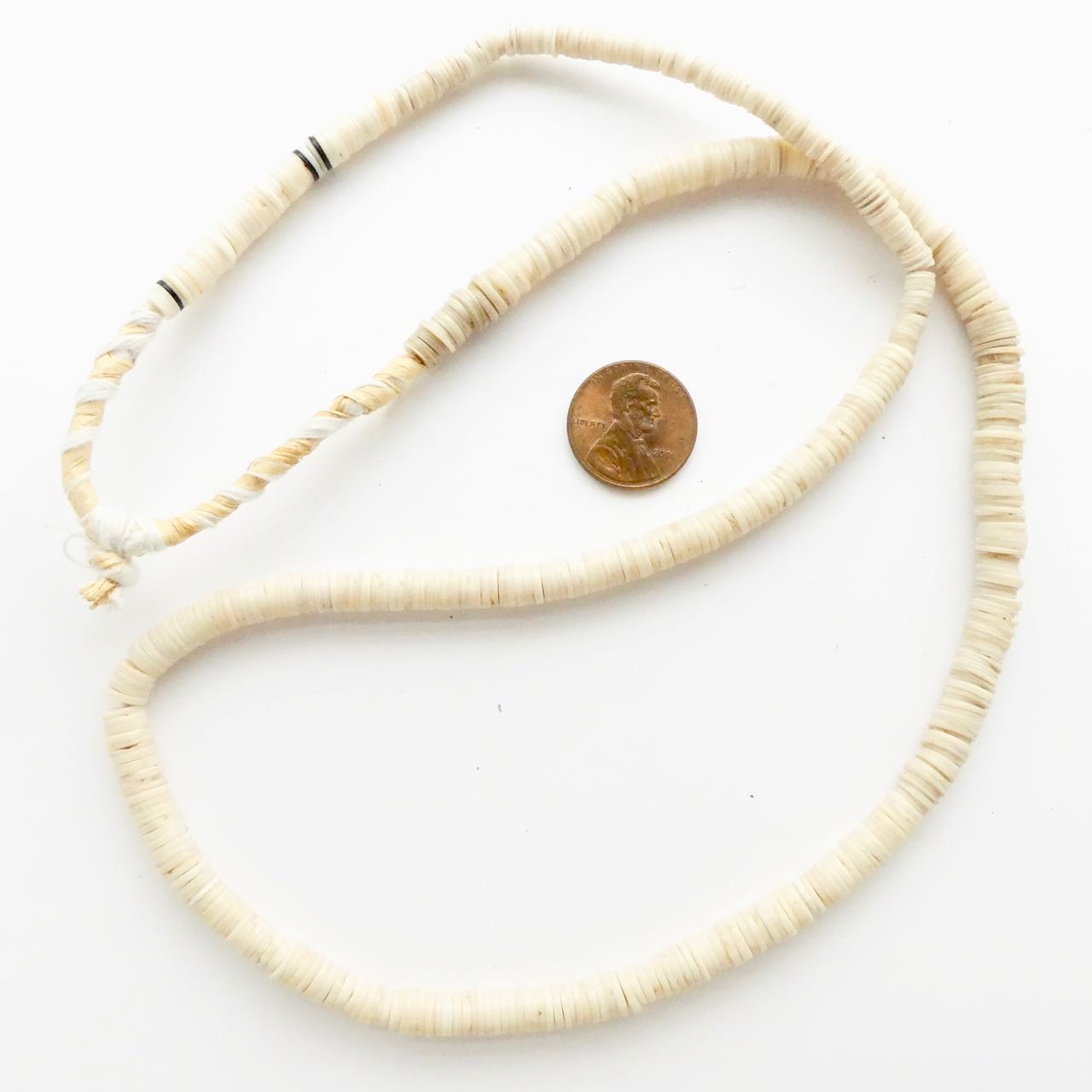 - Vintage African clamshell heishi beads ranging in size from 4-6mm