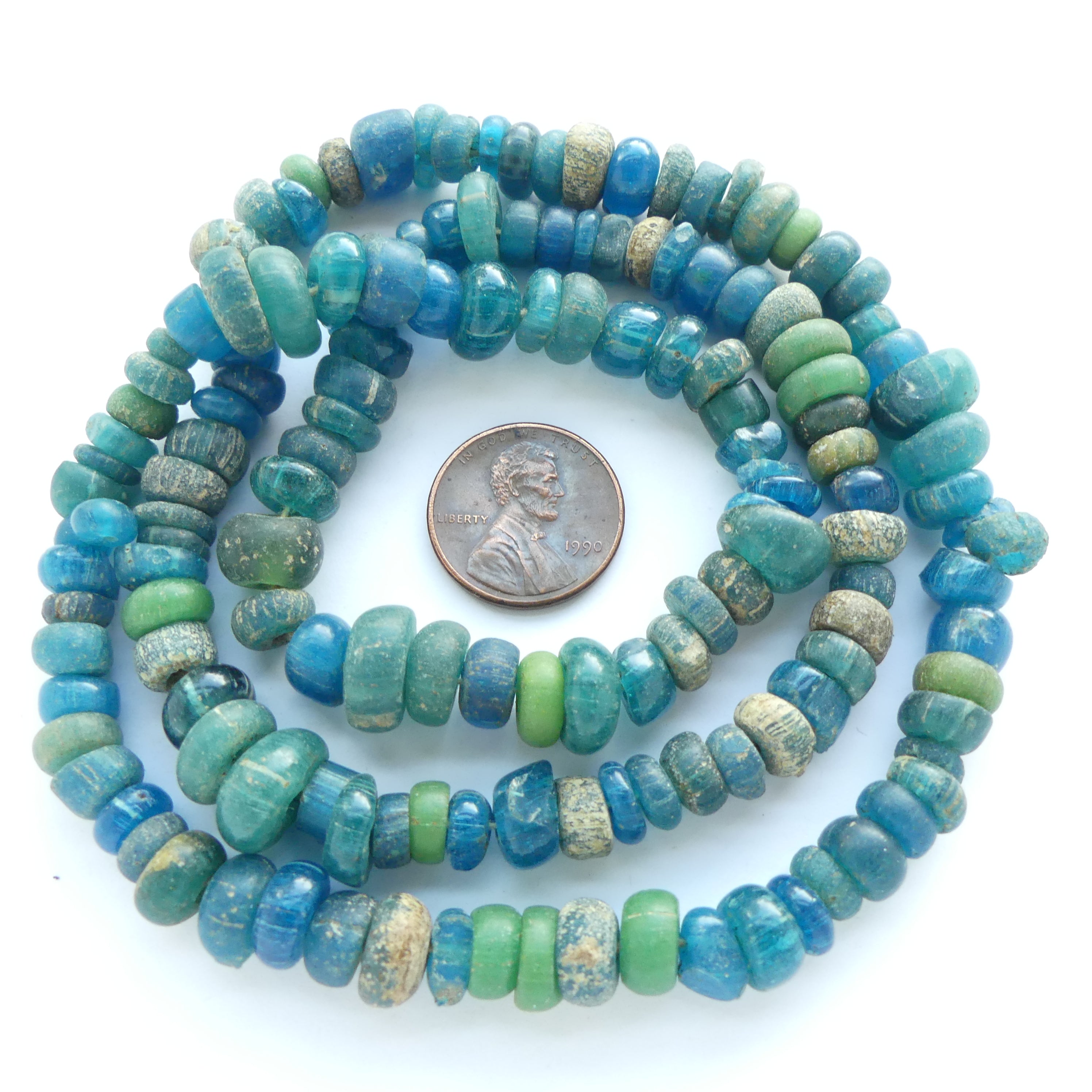 Antique, Indo-Pacific Beads from Africa, Deep Aqua, Excellent Condition, 24-inch strand