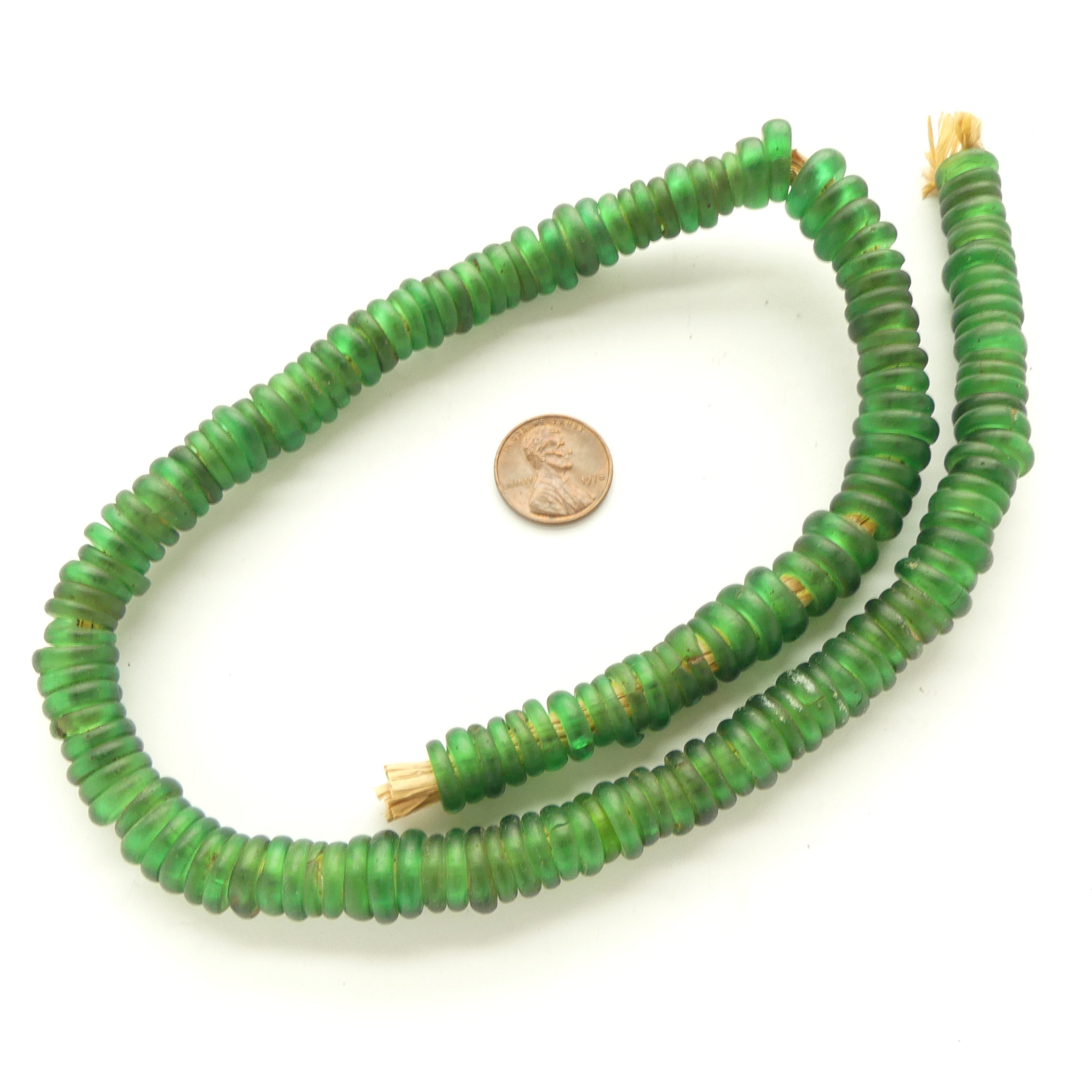 Dogon Donusts, Antique Dutch Annular Wound Beads, Green on 20-inch Strand