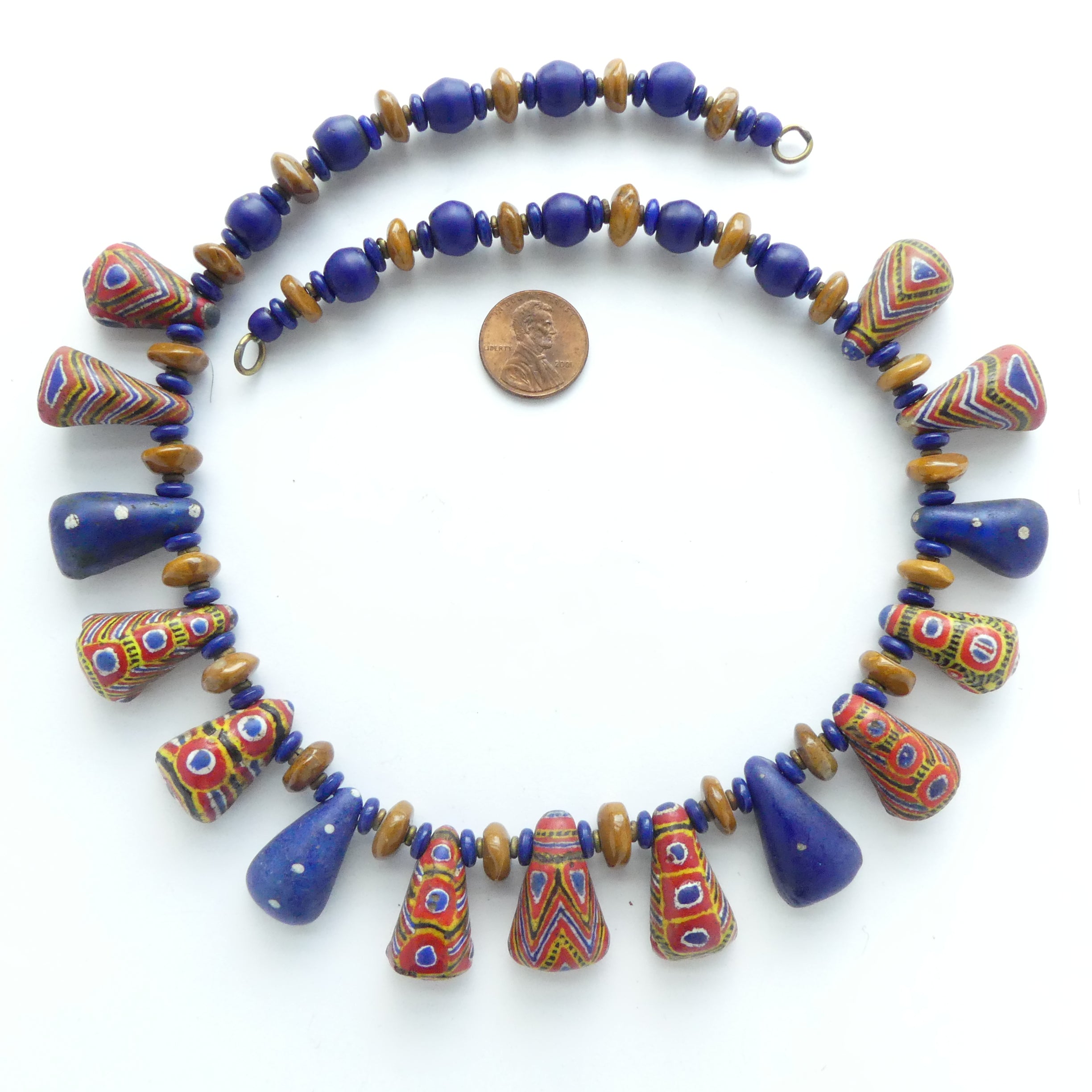 - This necklace contains 11 multi-color Kiffa beads and 4 blue ones