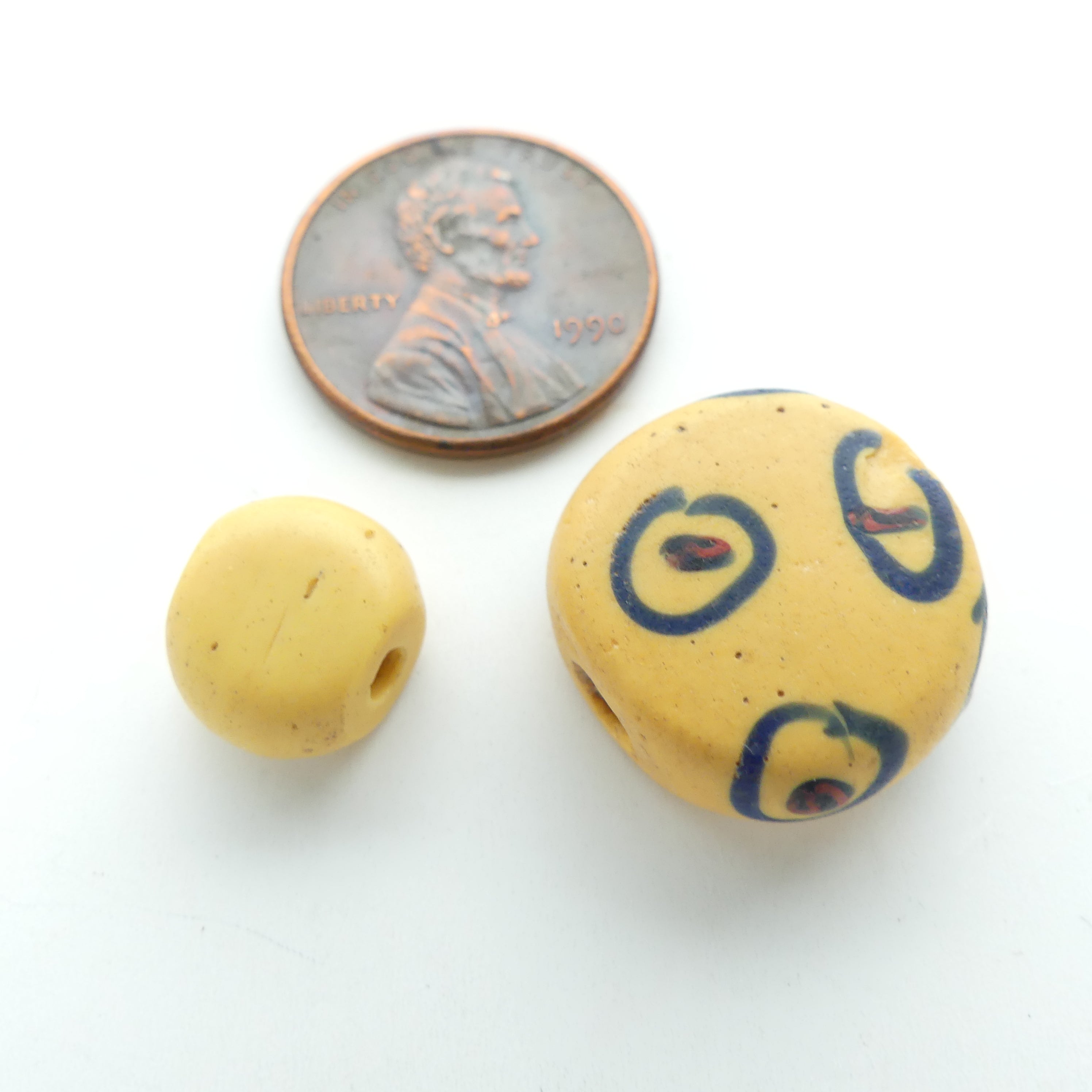 - Antique Venetian lampworkd coin shaped amber color glass beads