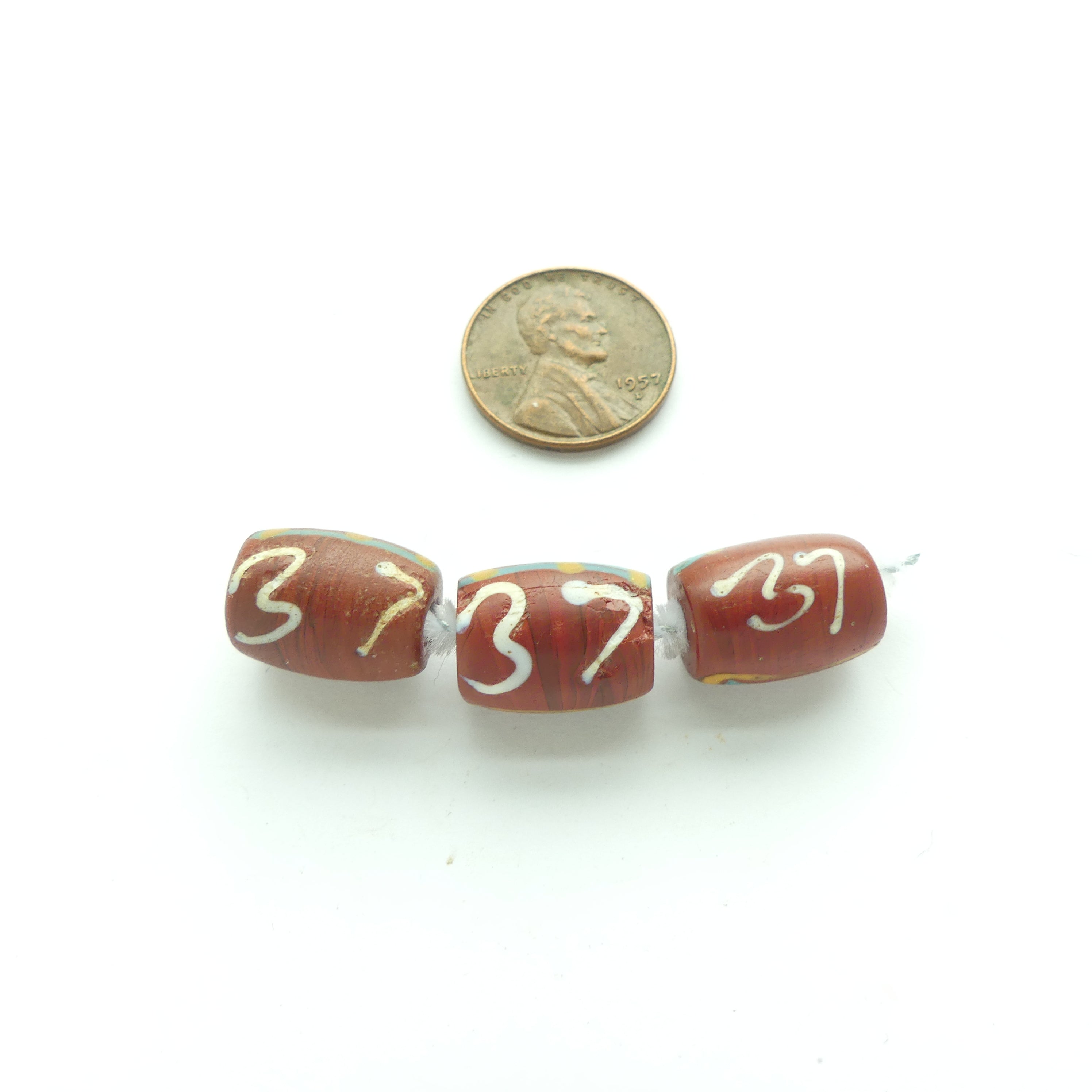 - Mysterious antique Venetian lampworked beads, brown with the number 37 in white on one side and 2V, 2Y or possible ZV on the other size