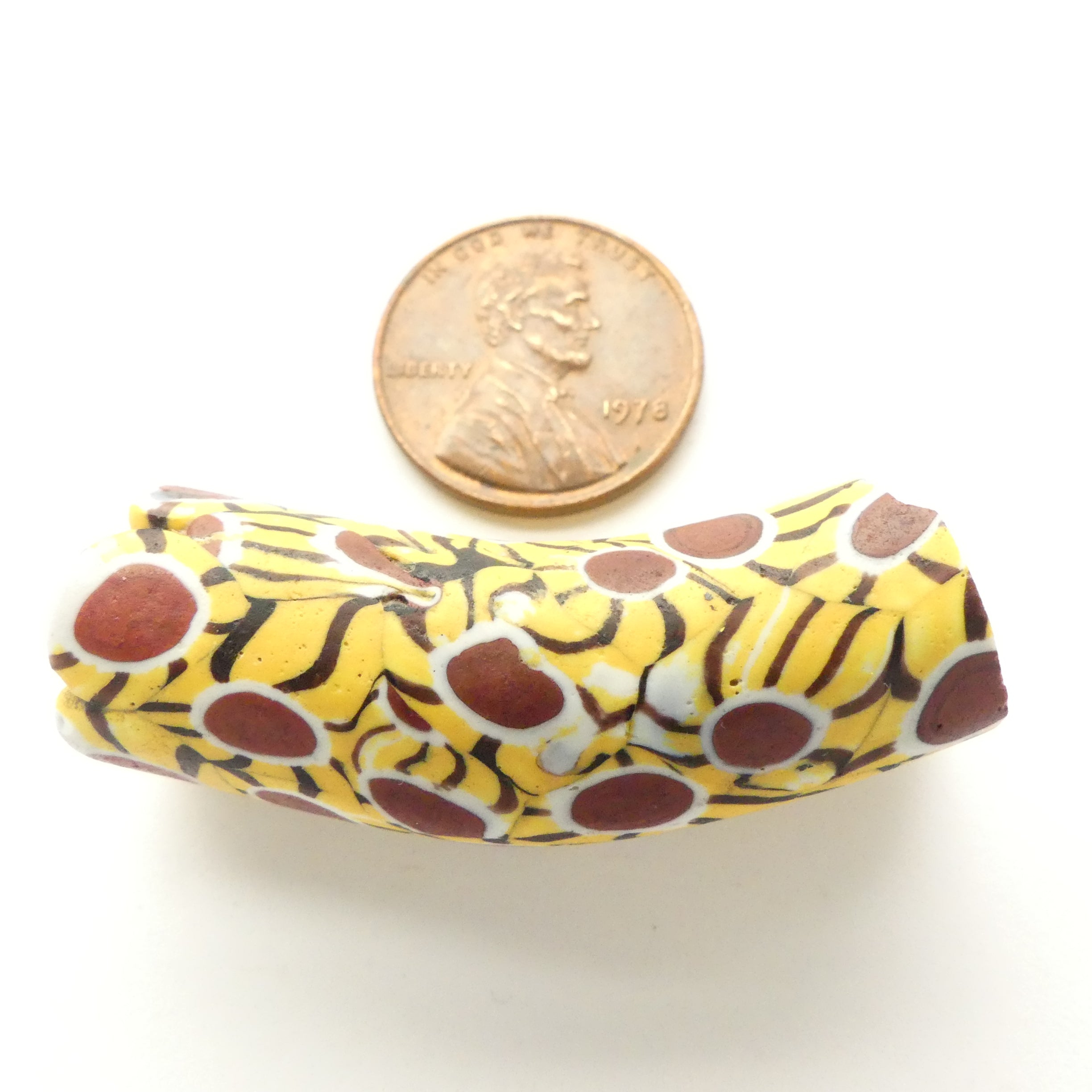 Millefiori Antique Venetian Trade Bead, Amber, Brick, White & Black, Elbow, 38x14mm