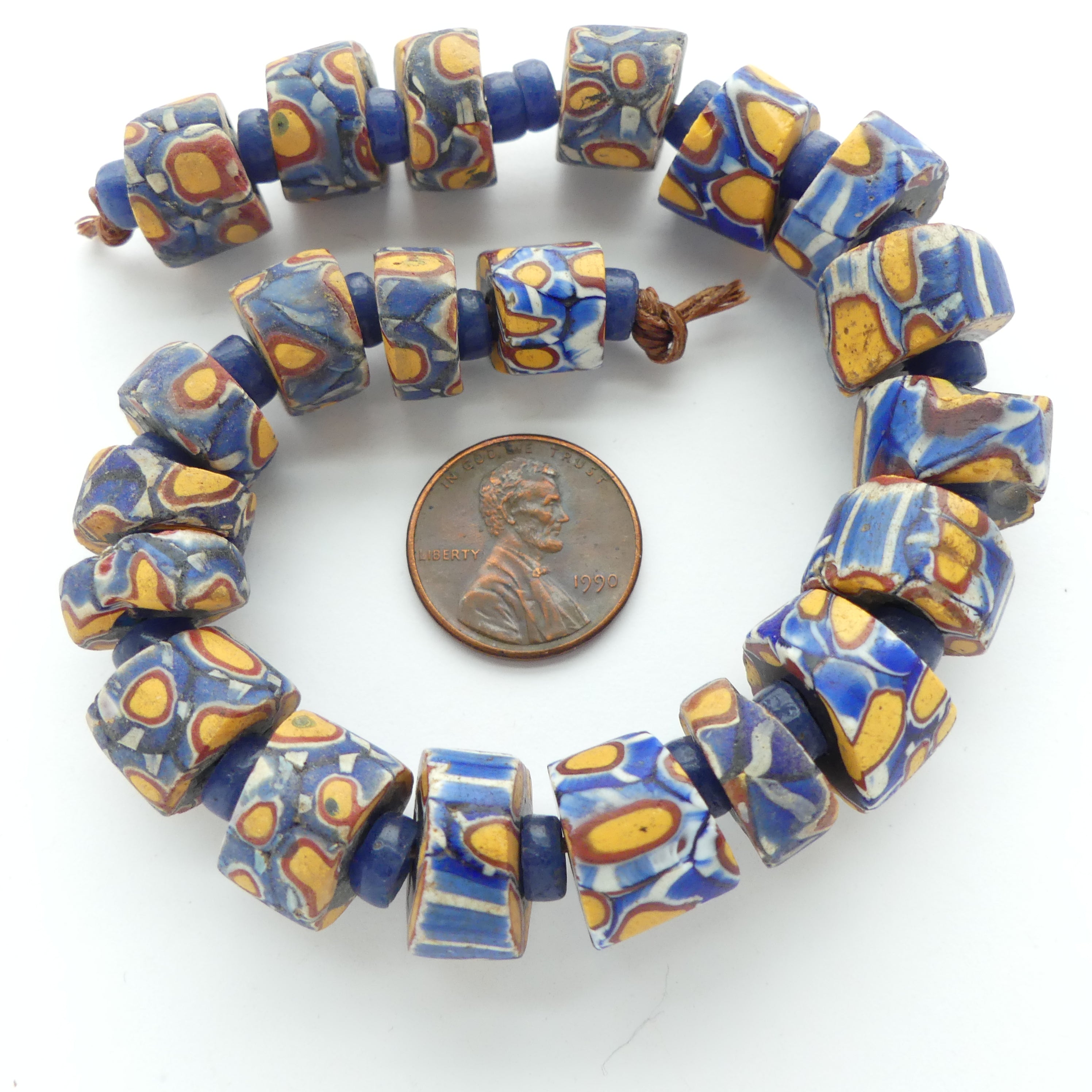 Millefiori, Antique Venetian Trade Bead, Slices Blue & Amber Set of 21 with spacers