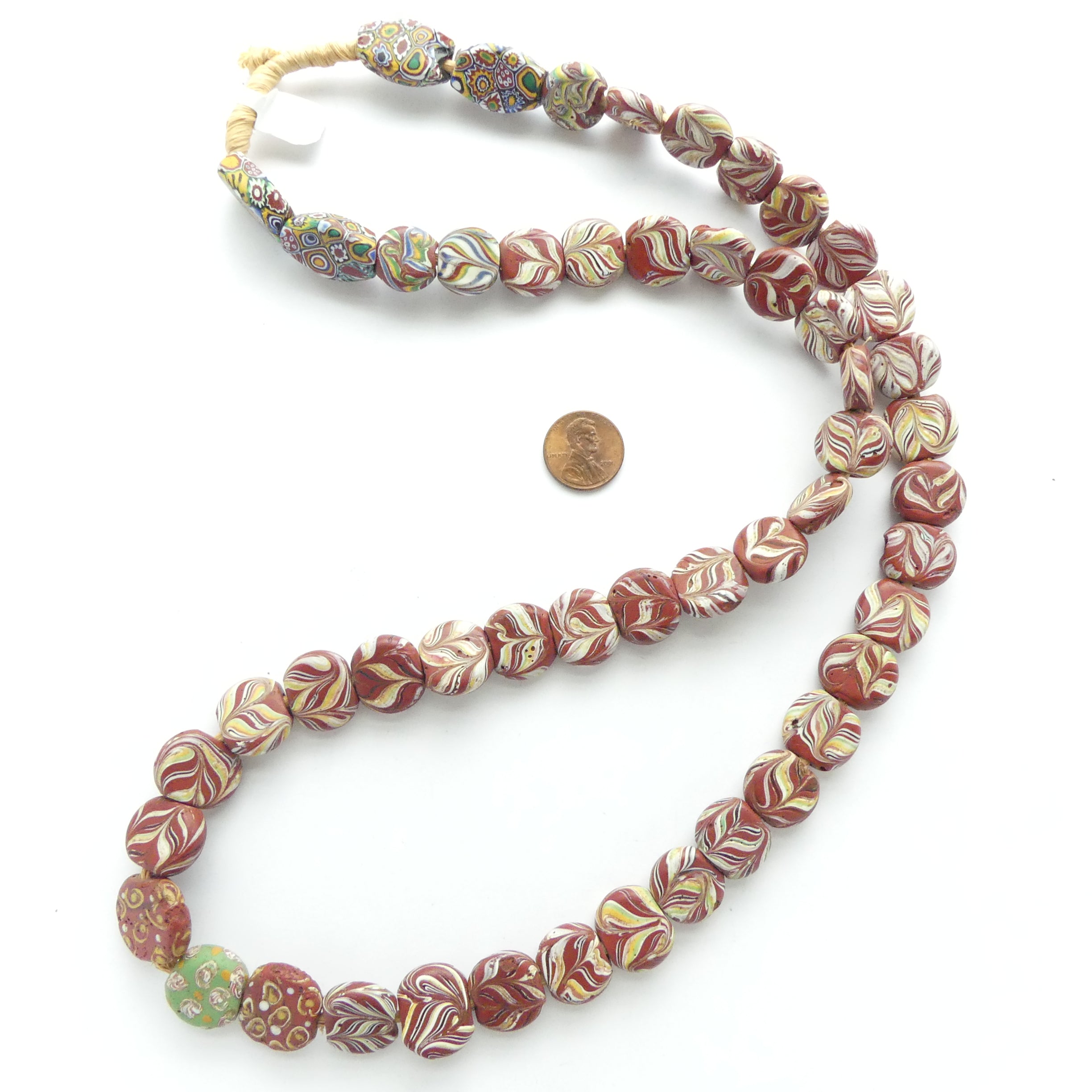 Tabular, Antique Venetian Lampwork, Mostly Feathered, Long Strand