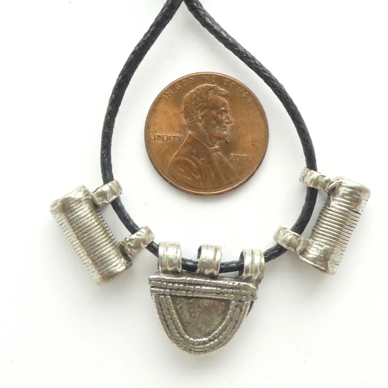 - Set of three vintage telsum, Ethiopian coin silver amulets, center pendant 16x12mm
