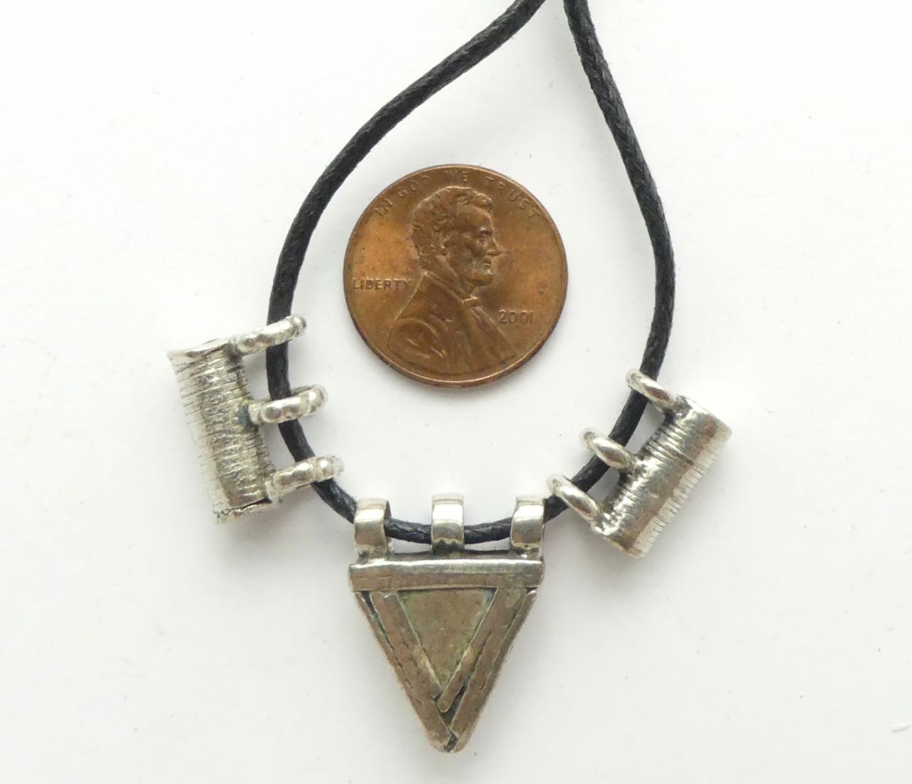 - Set of three vintage telsum, Ethiopian coin silver amulets, center pendant 16x20mm