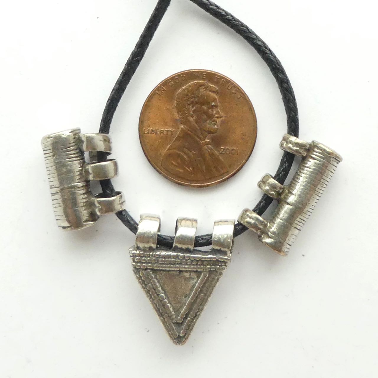 - Set of three vintage telsum, Ethiopian coin silver amulets, center pendant 16x20mm