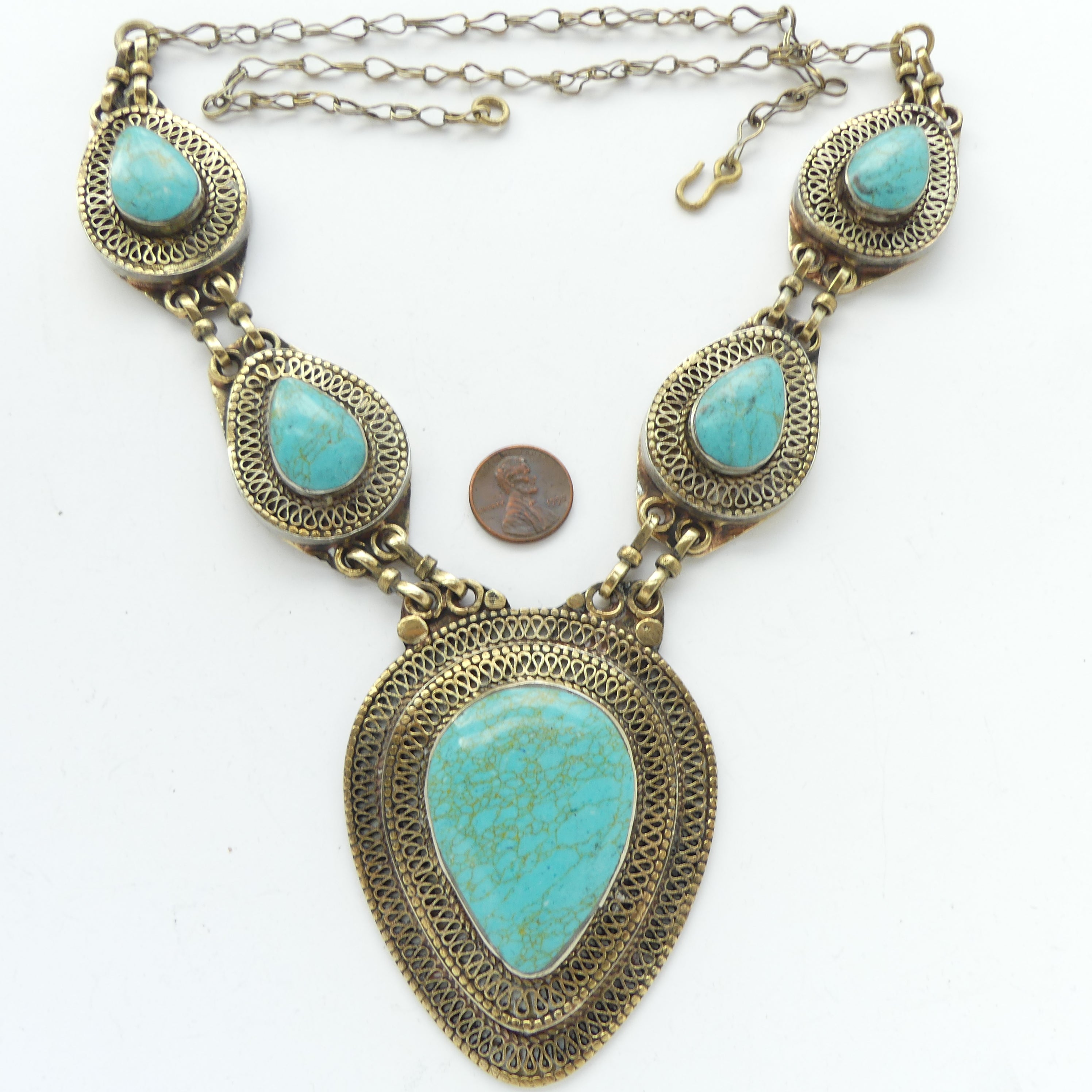 Afghan Necklace/Pendant, Set of 5 Inverted Teardrop Shapes, Larges 2.5x3.5 inches