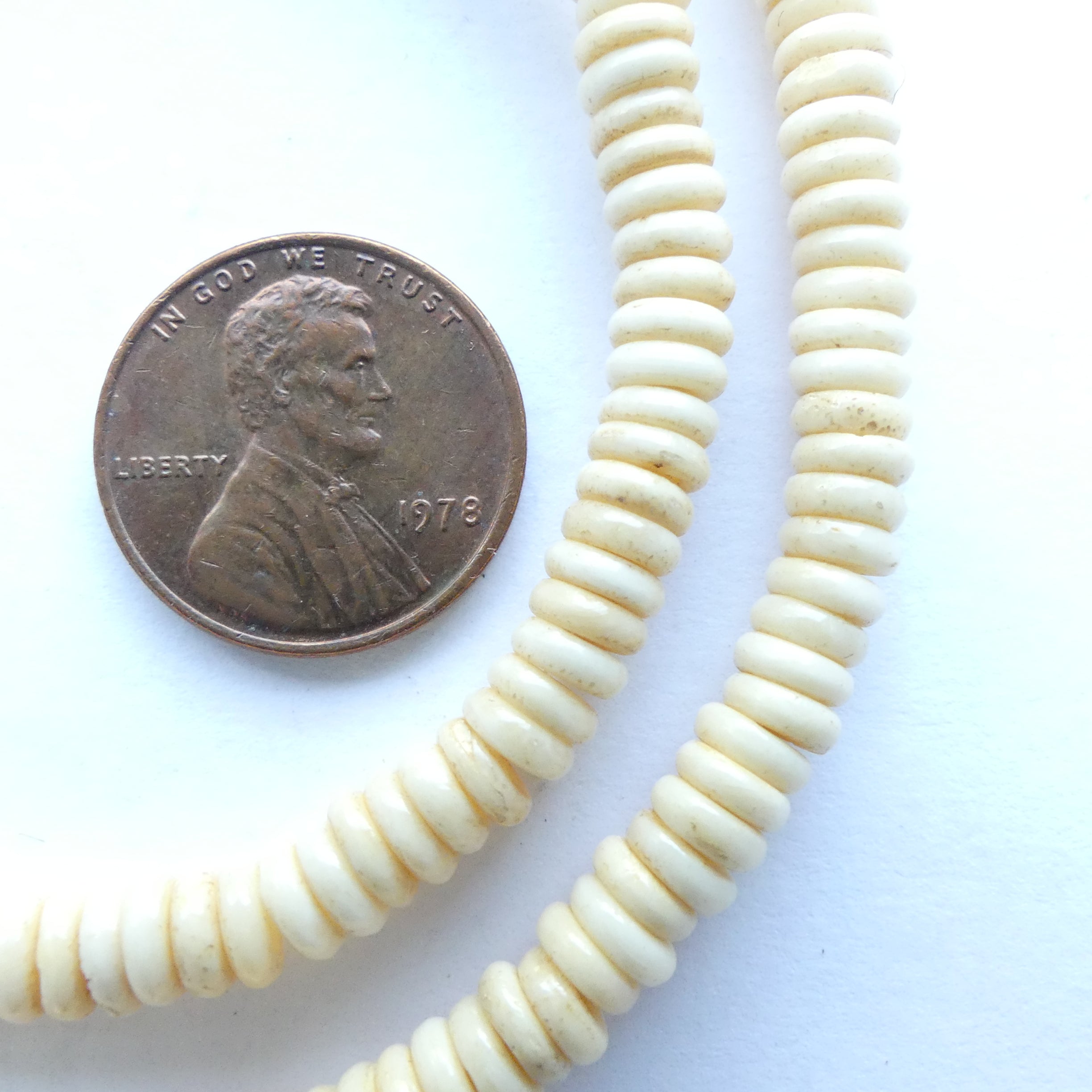 Bone Slices, Strand of Antiqued Bone Beads 1x5mm
