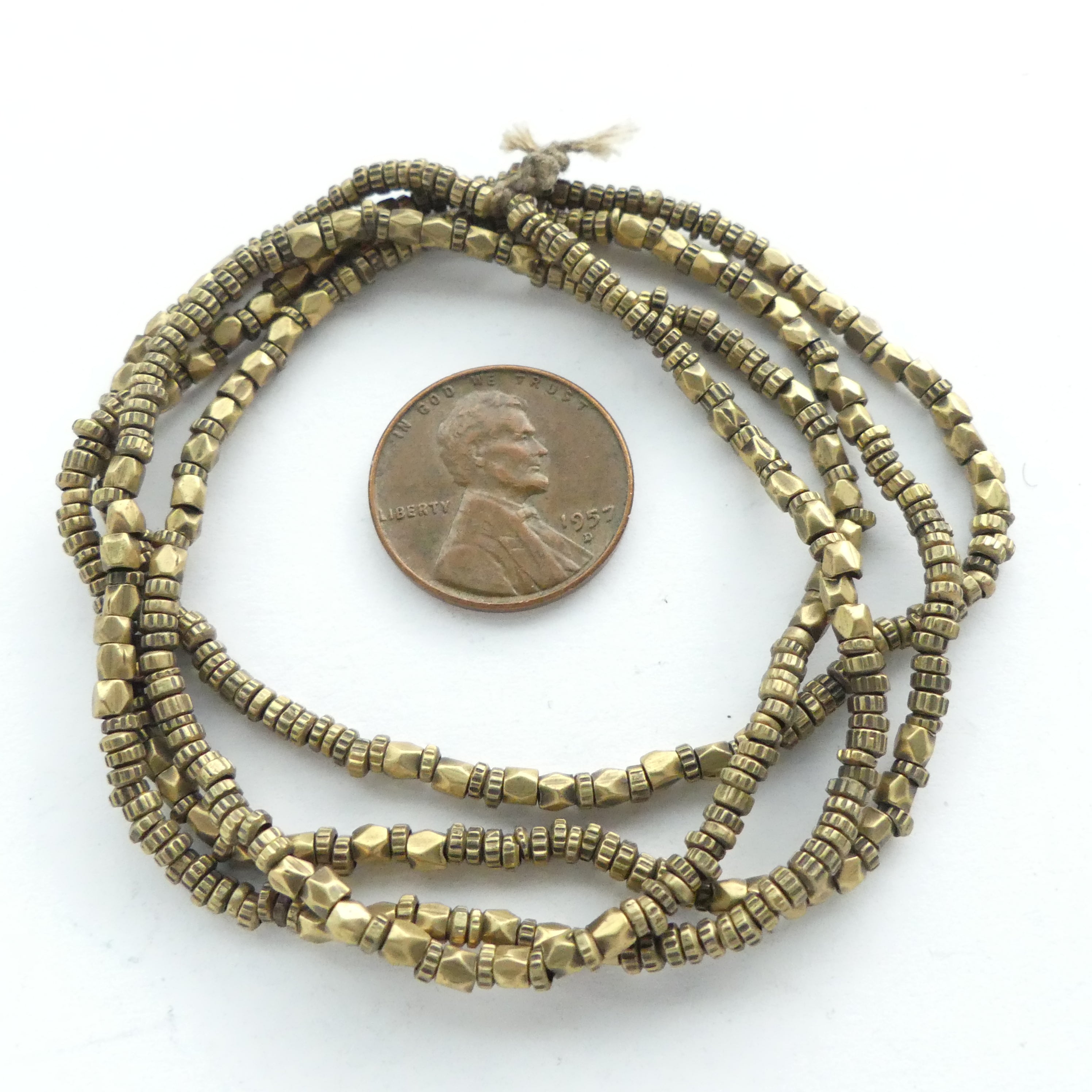 Brass, Mixed Shapes of Tiny Indian Brass Beads, 1-2mm on 26-inch strand