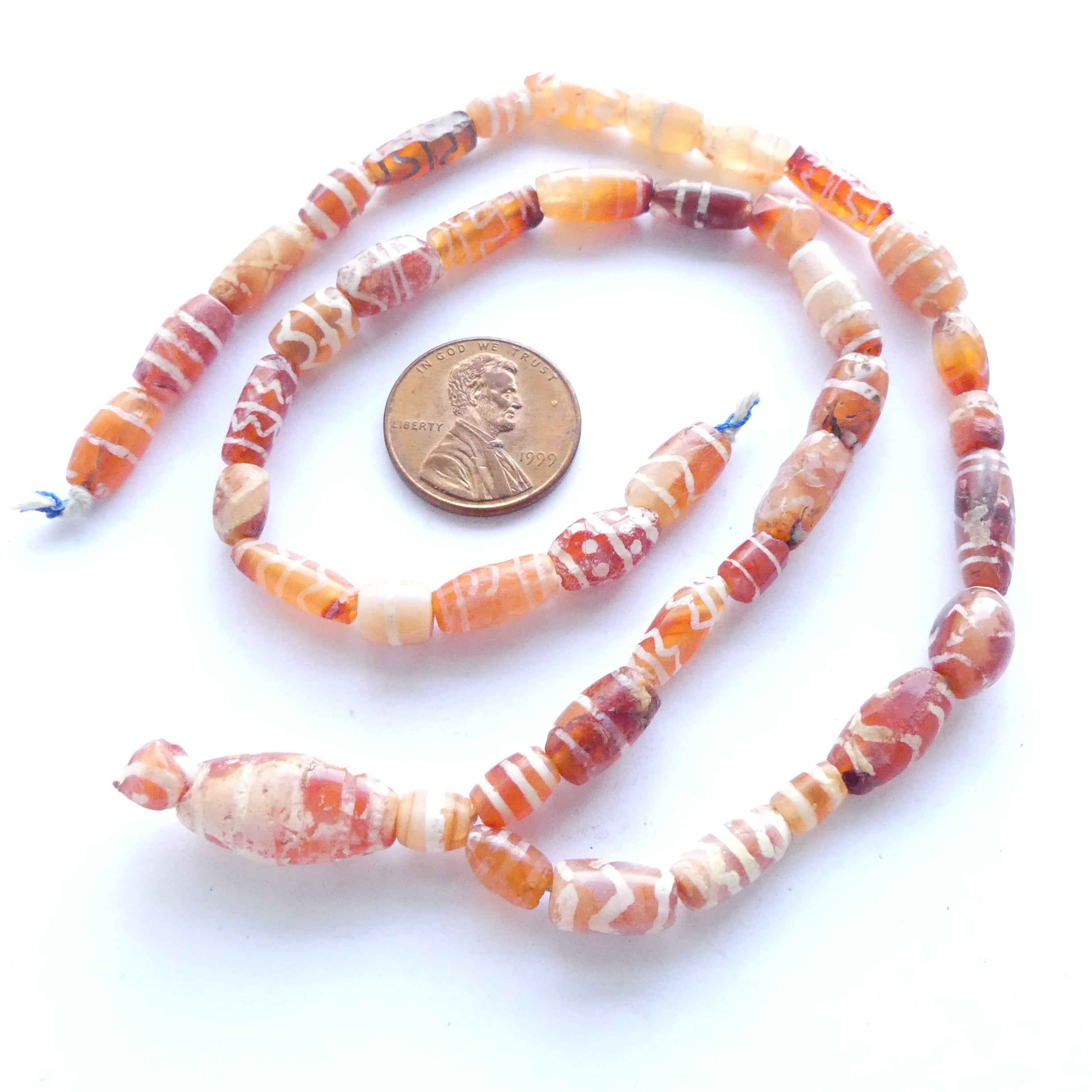 - Ancient etched carnelian beads from Afghanistan, largest pendant bead 18mm
