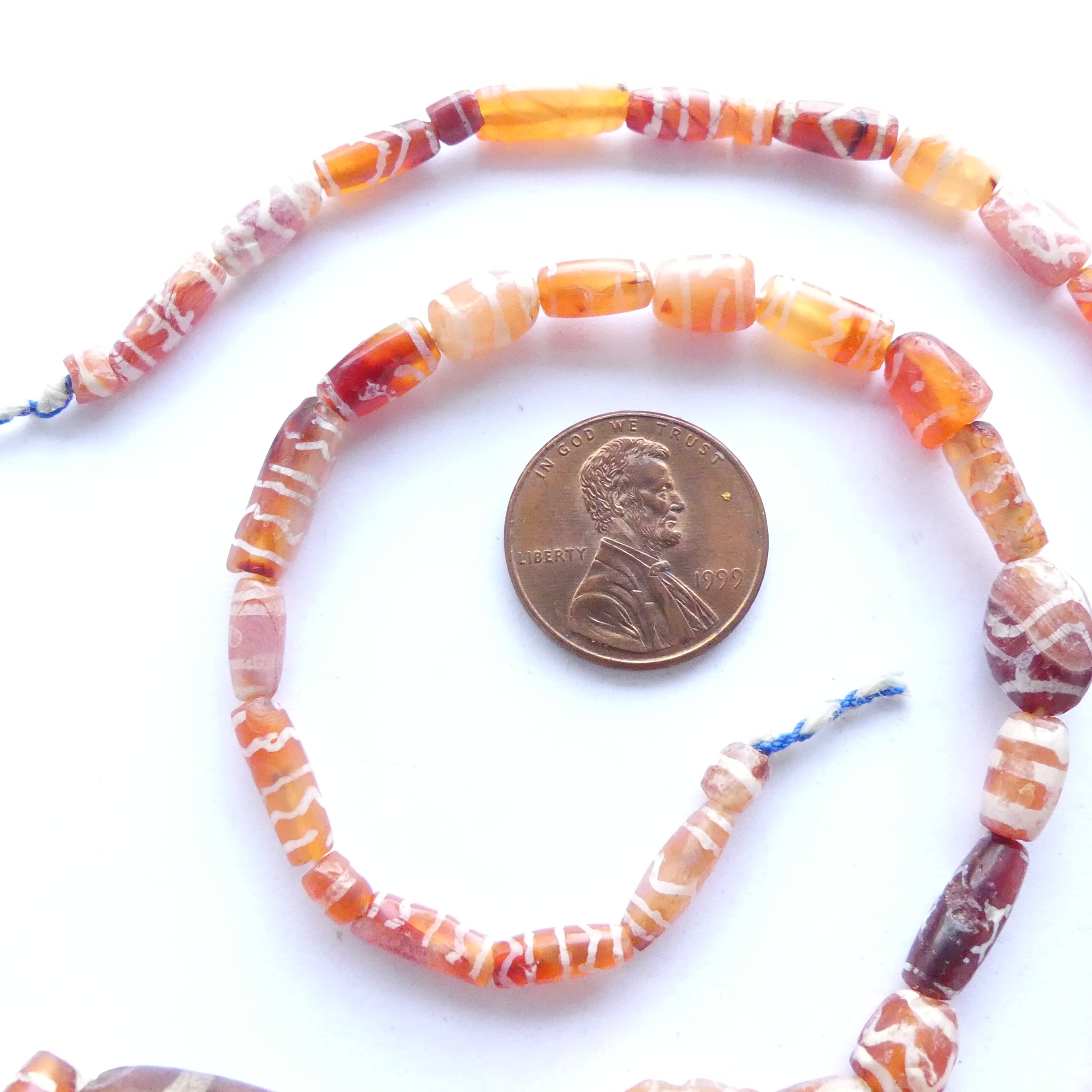 Carnelian, Ancient Etched from Afghanistan, Largest 20mm, 18-inch Strand