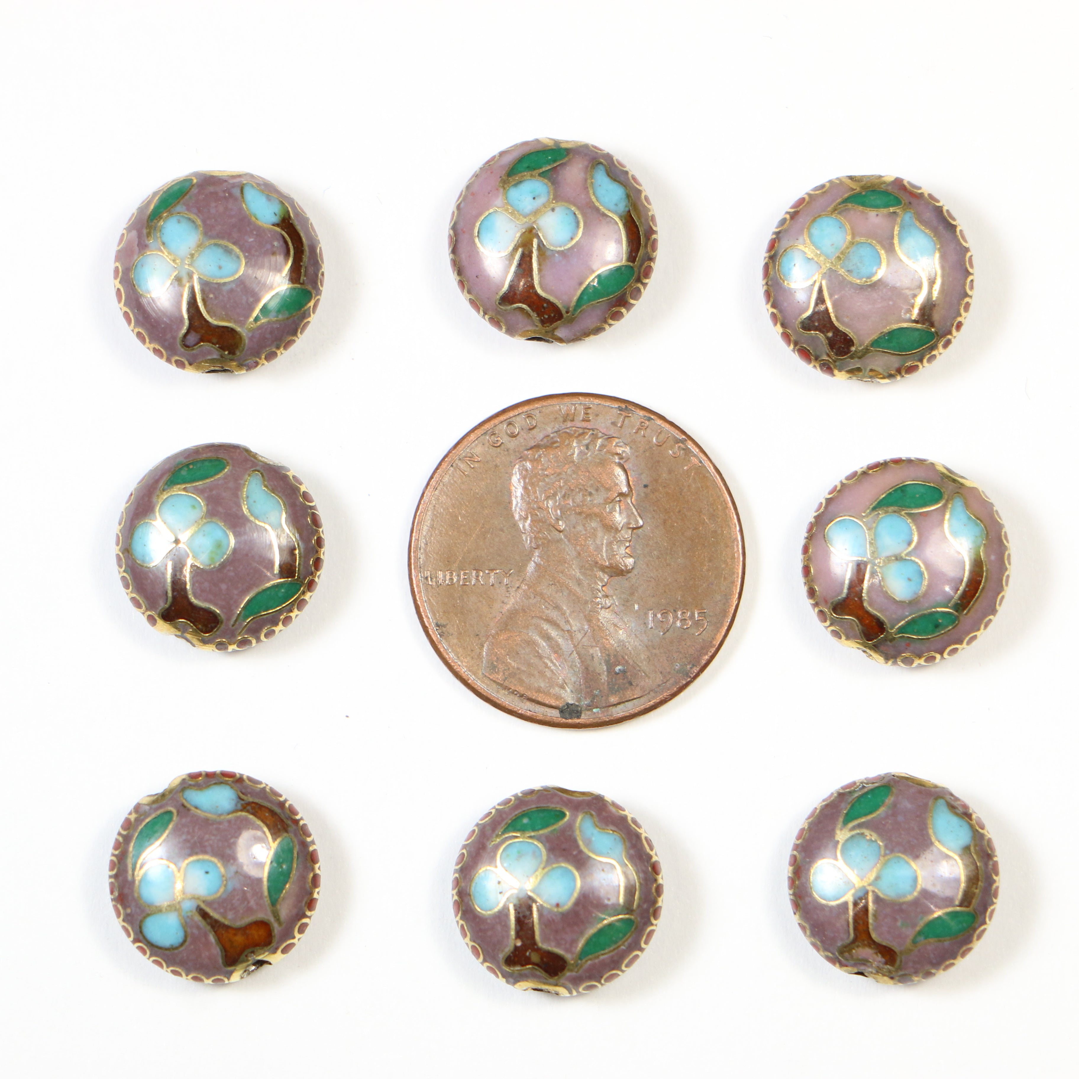 - Vintage cloisonne, lavernder with blue puffy coin shape, 12mm diameter