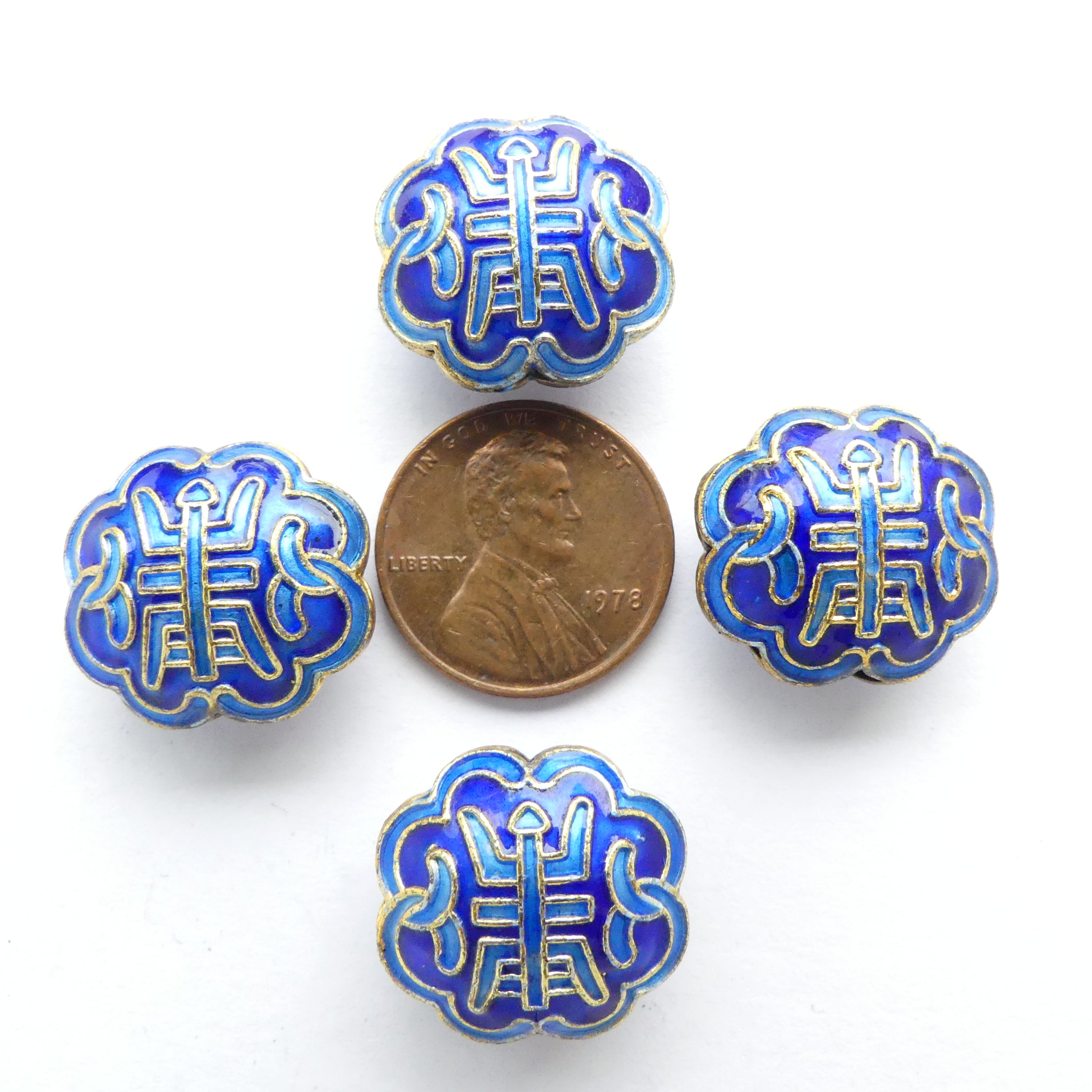 Enameled, Pillow Shape with Auspicious Characters, Blue 17mm. Sold Individually