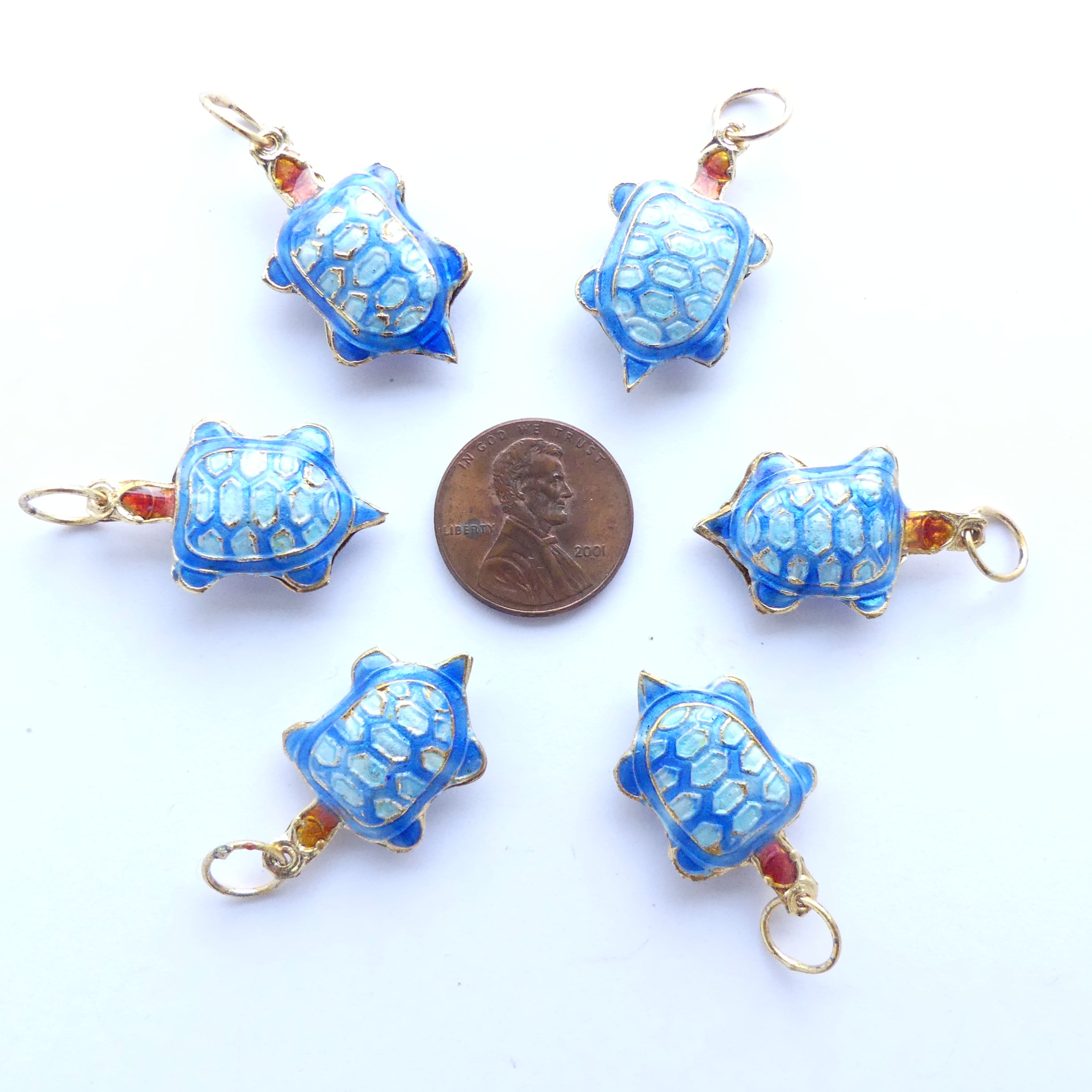 - Small Chinese enameled turtles, 33mm long with loop and 15mm wide