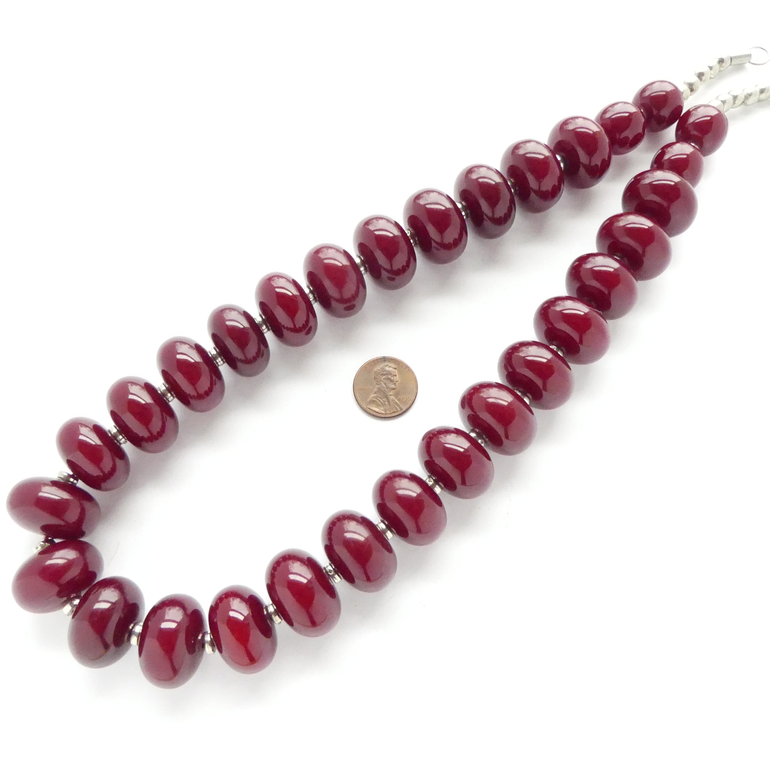 Tibetan Faux Amber, Cherry Red Oblates, 15x23mm on Strand 25-inch Necklace