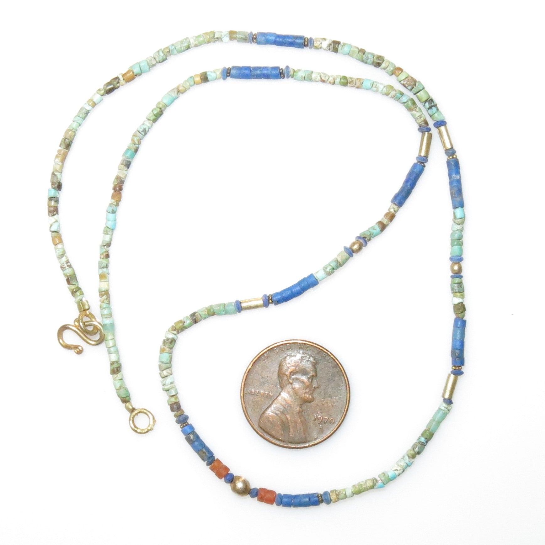 Turquoise, Afghan & Lapis Micro-Beads on 15.75-inch Strand