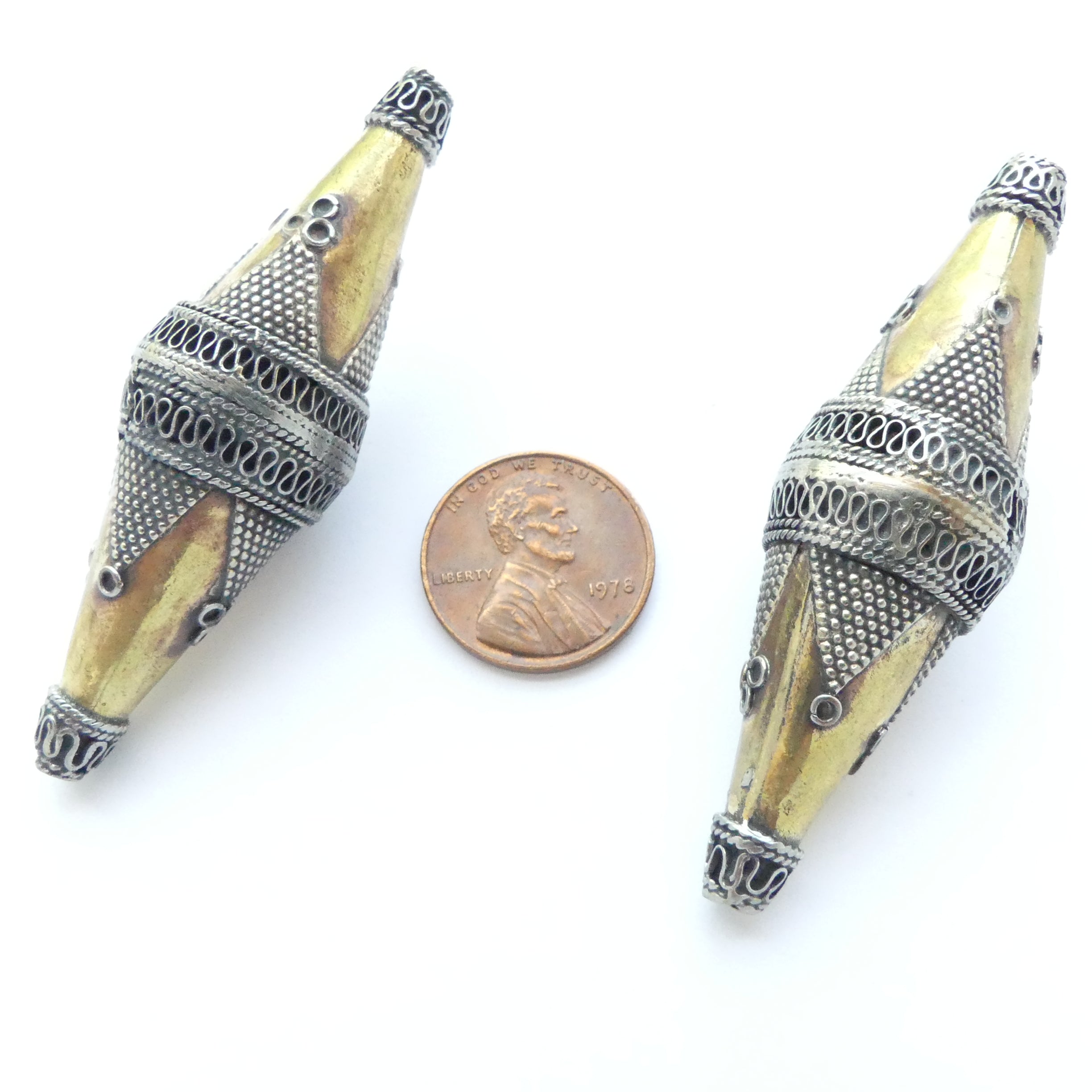 - Small vintage Turkoman bicones with granulation and fire-gilding 40x12mm