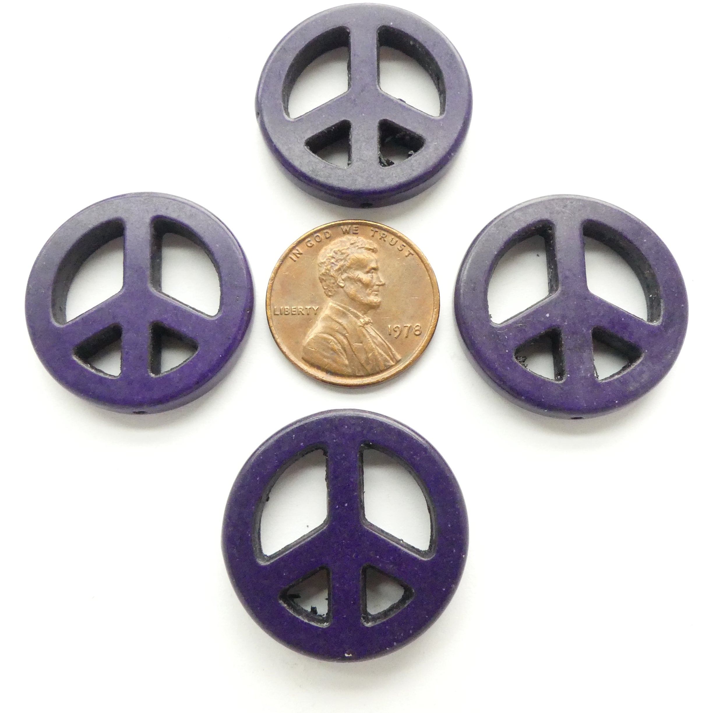 Magnesite Dyed Dark Purple, Peace Signs 25mm Diameter, Sold by Sets of 4