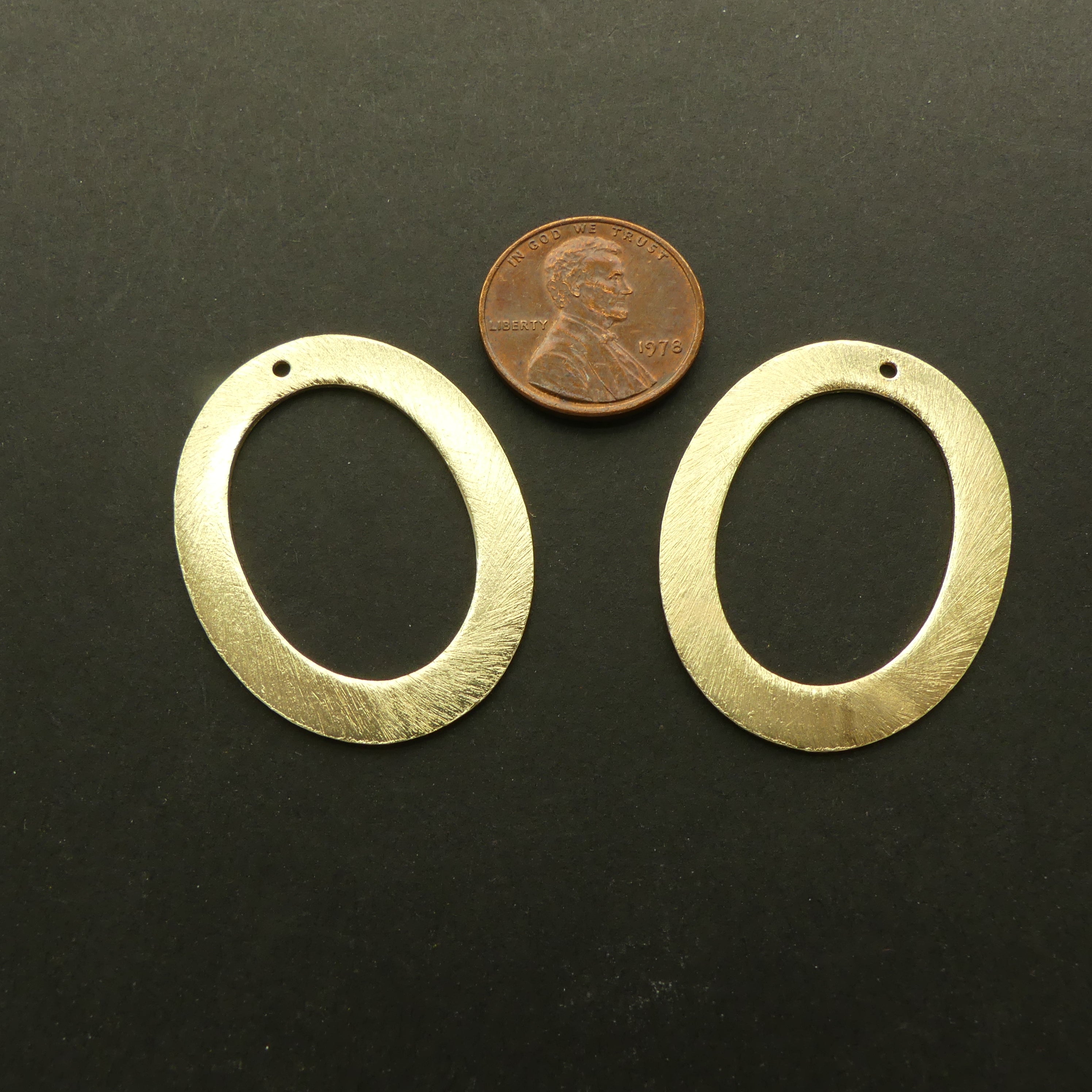 Brushed Gold Finish Earring/Pendant Parts, Flat Oval 36x27mm, Sold Individually