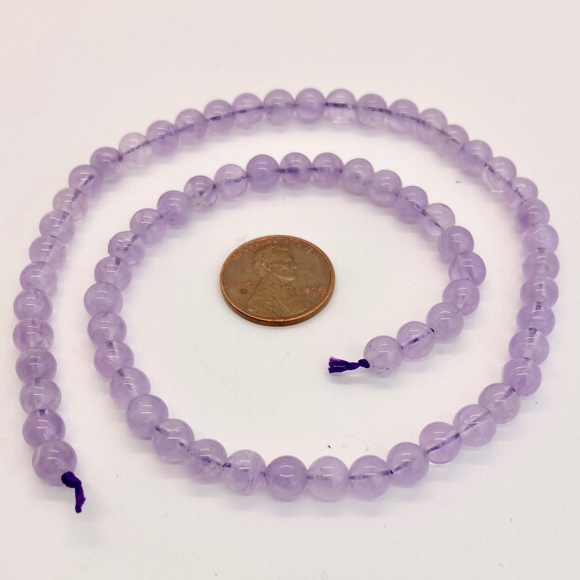 - Smooth round Cape Amethyst beads 6mm diameter on 15.5-inch strands