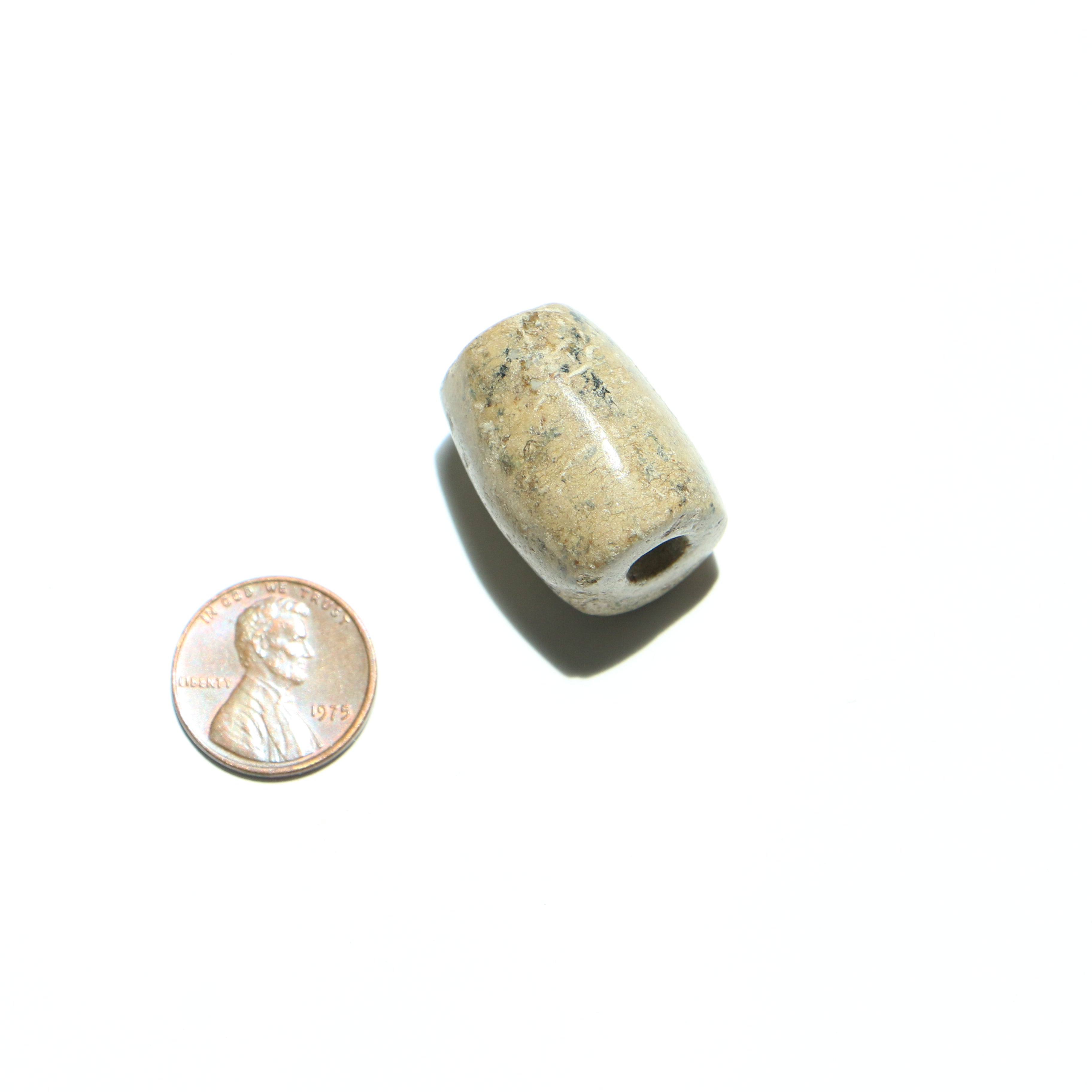 • Ancient Maya large stone bead beige with some darker markings