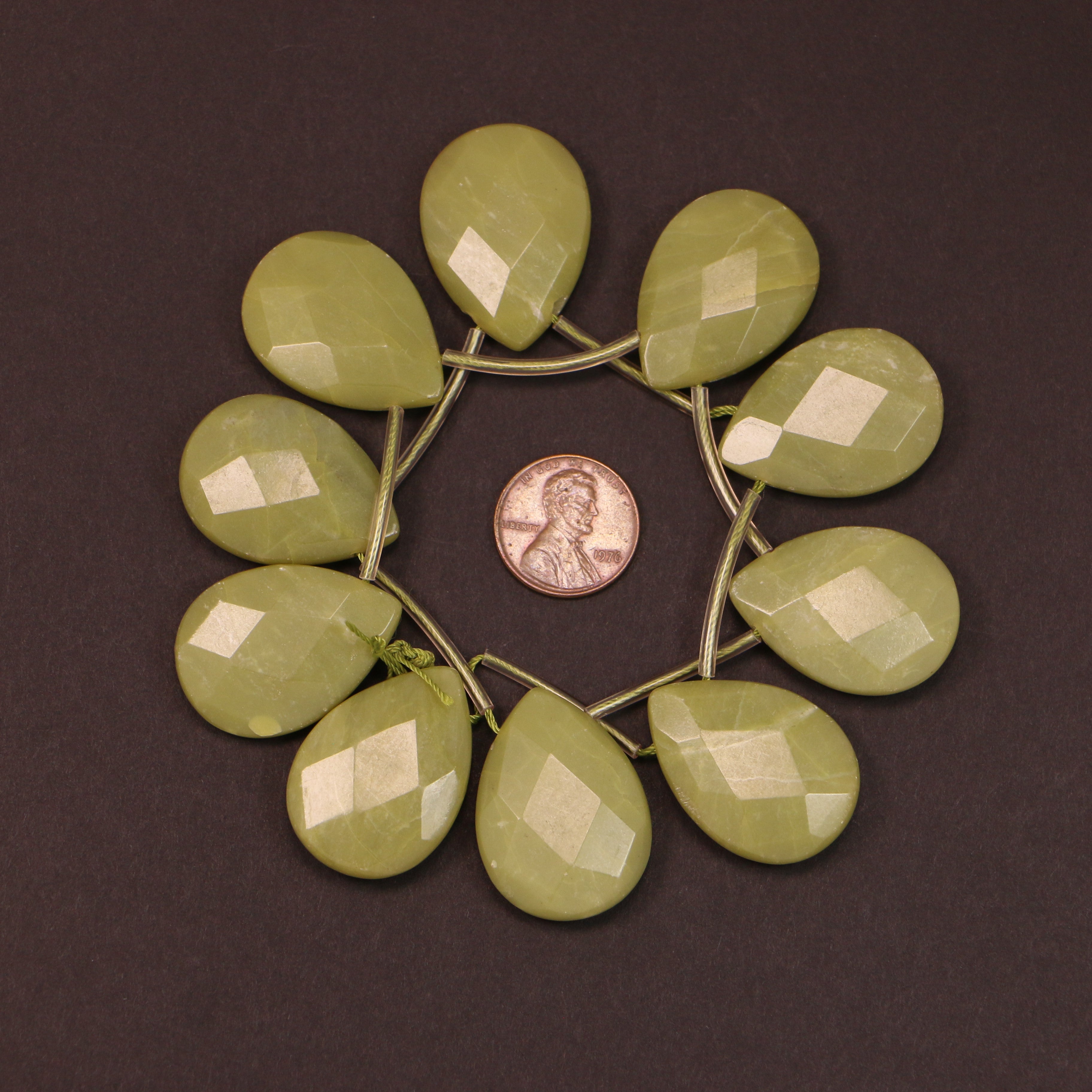 Olive Jade, Faceted Large Teardrop Shapes, 22x30mm, Sold Individually