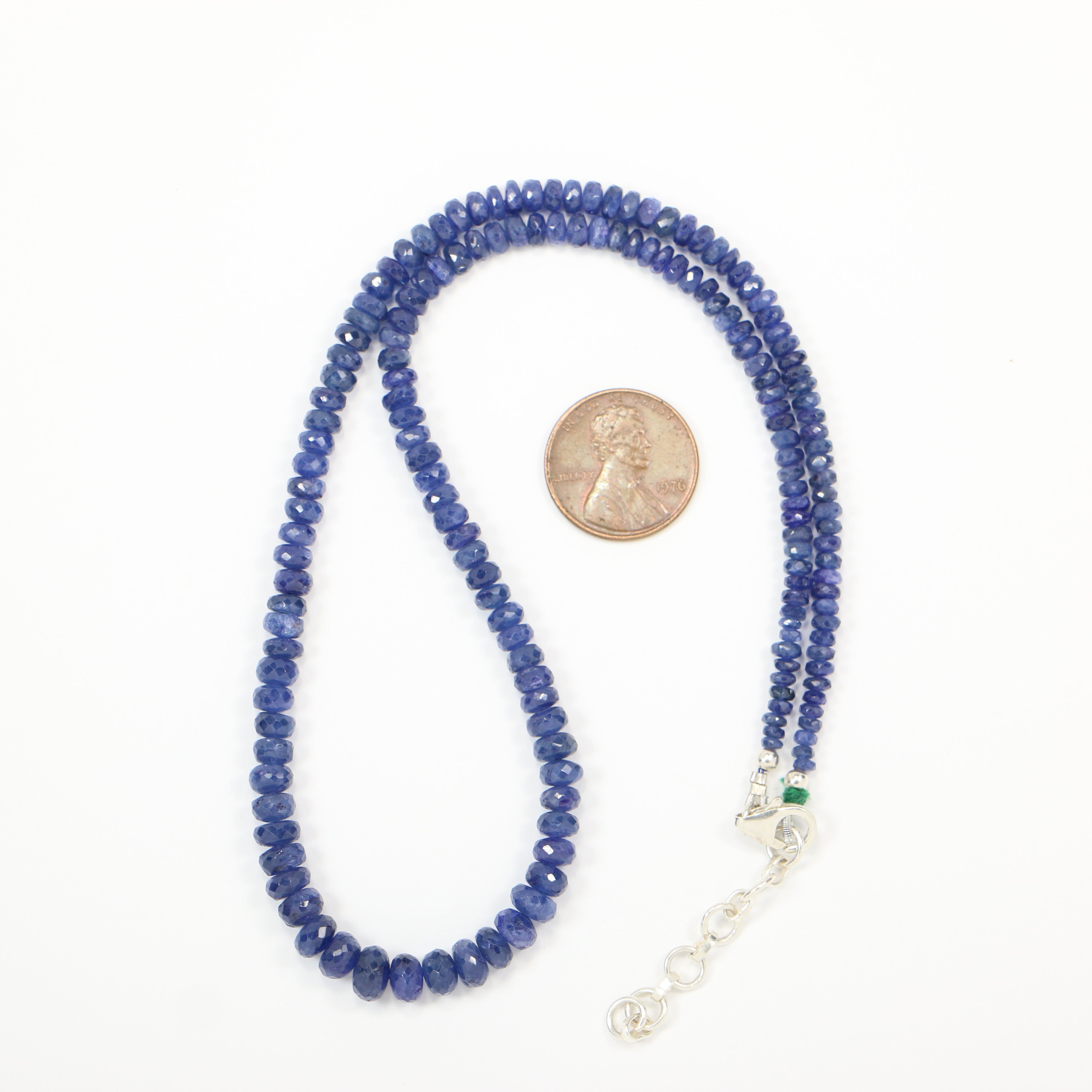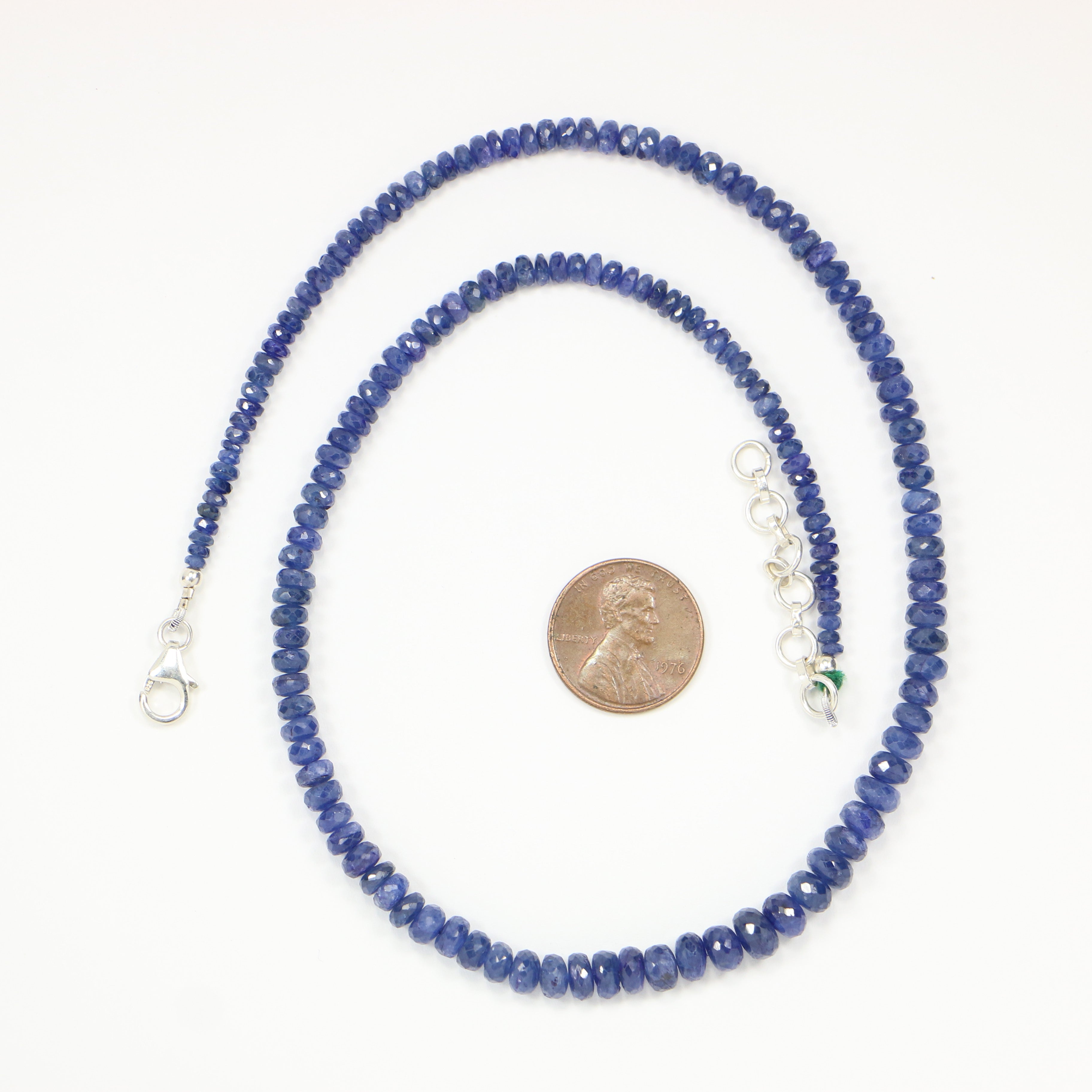- Faceted natural blue Sapphire, on a graduated strand with beads from 2mm to 7mm diameter. 16 inches long