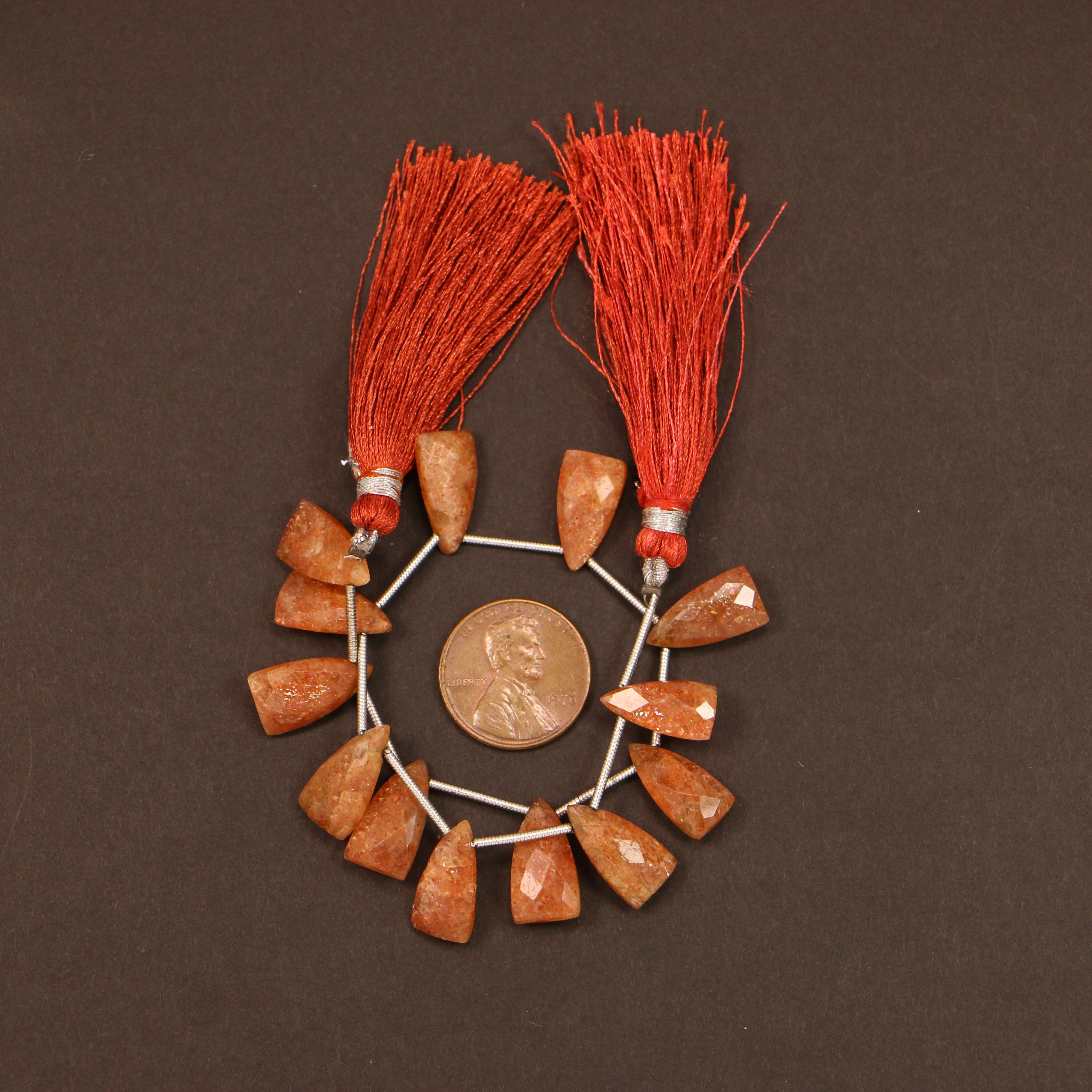 Sunstone, Briolettes, Triangular Shape Sets of 13 Beads