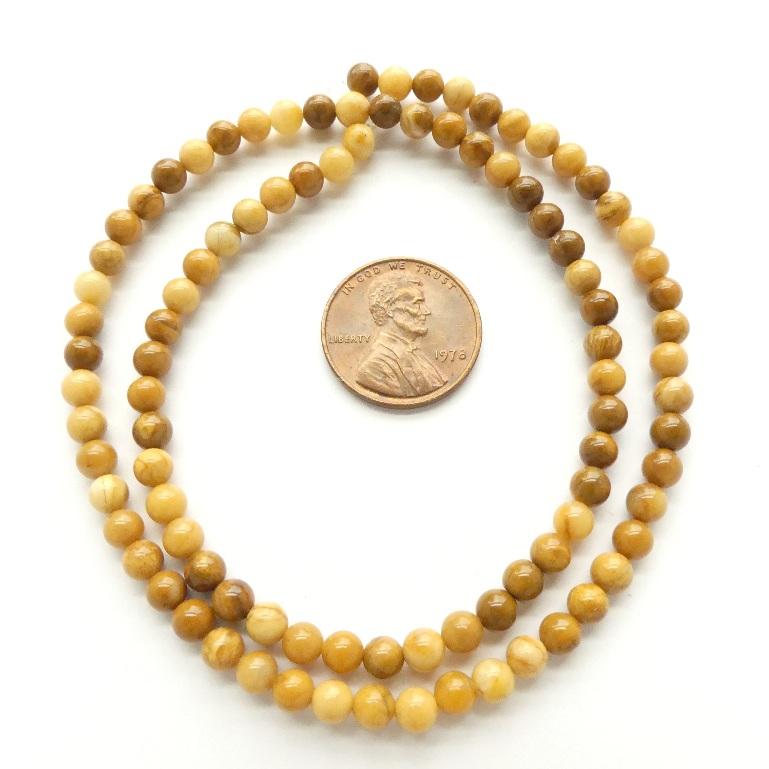 - Yellow Jasper smooth 4mm beads on 16-inch strands
