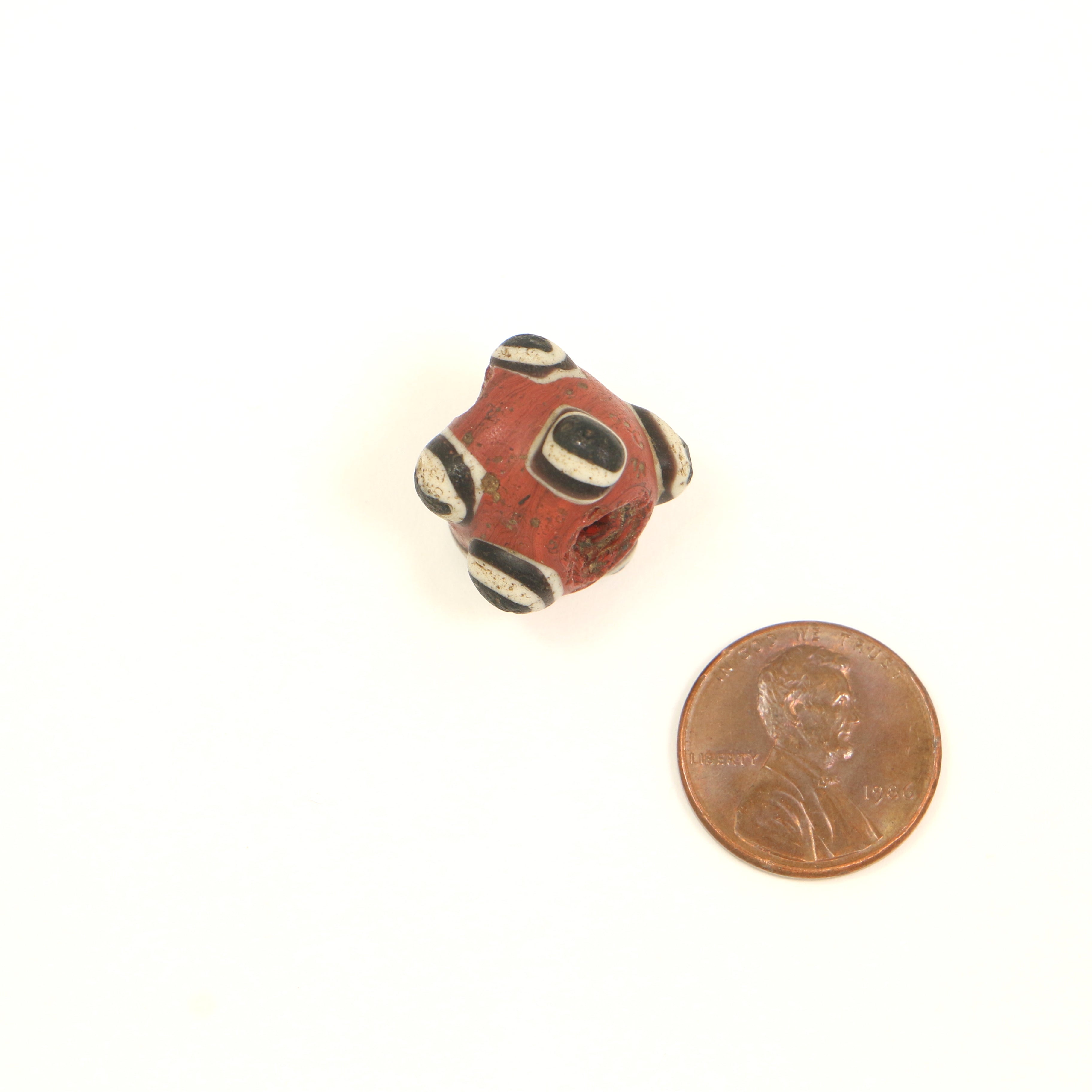 Ancient Islamic Horned Eye Bead, Round Red, White and Black, 9x18mm