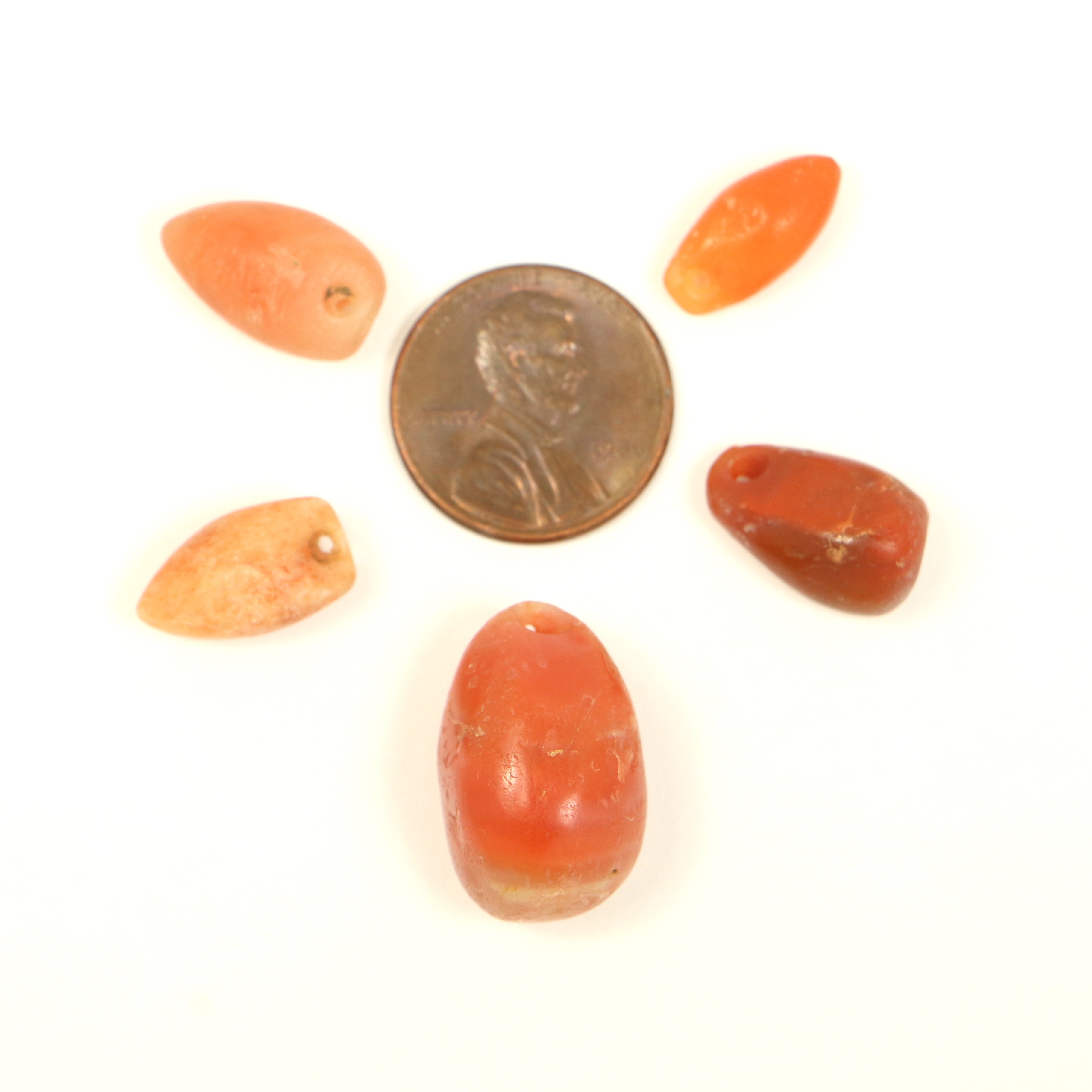 Carnelian, Ancient,Tairona Pre-Columbian Pendants, Set of 5 including one "Bullet" Style