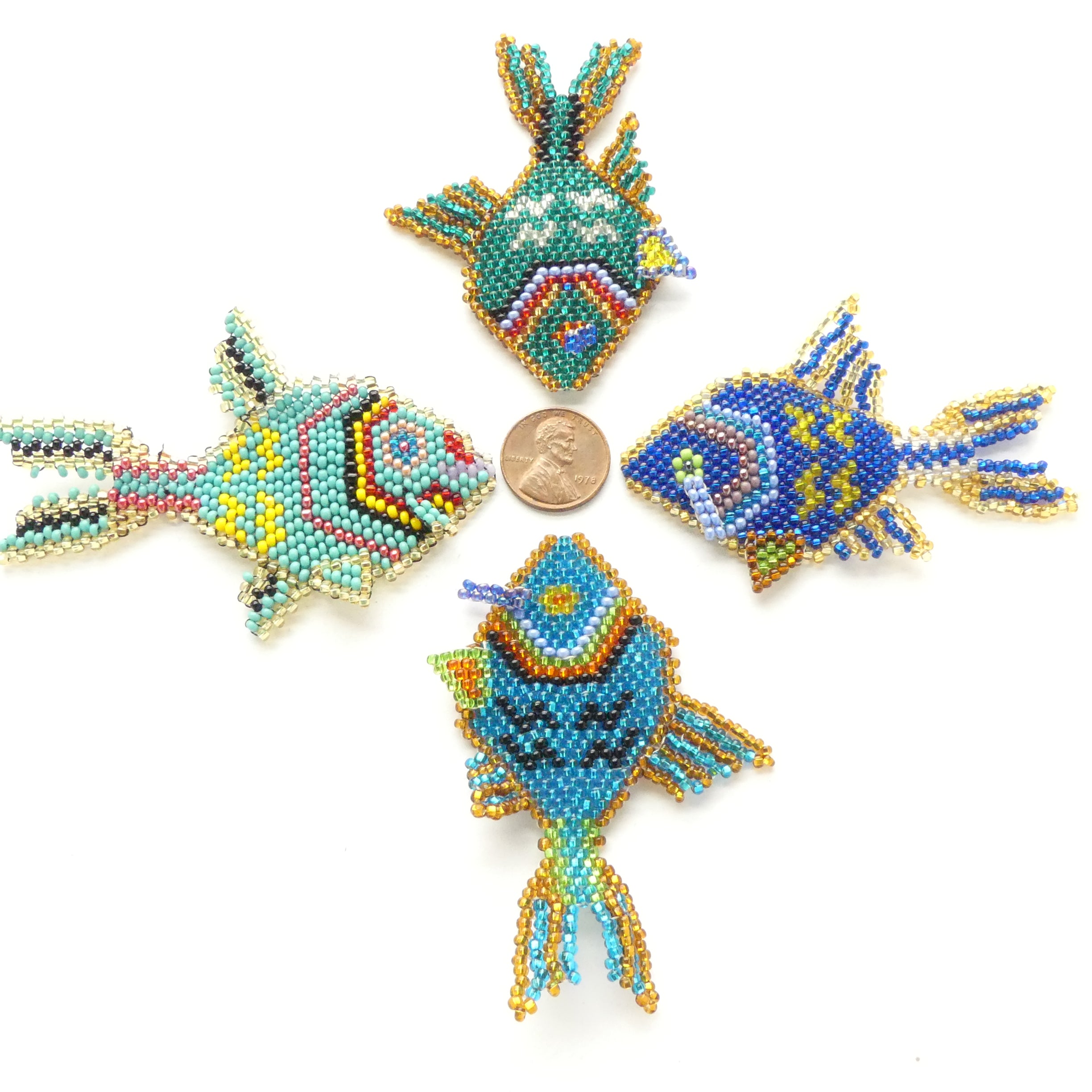 - Sets of 4 Guatemalan fish made of glass seed beads each about 3 inches long