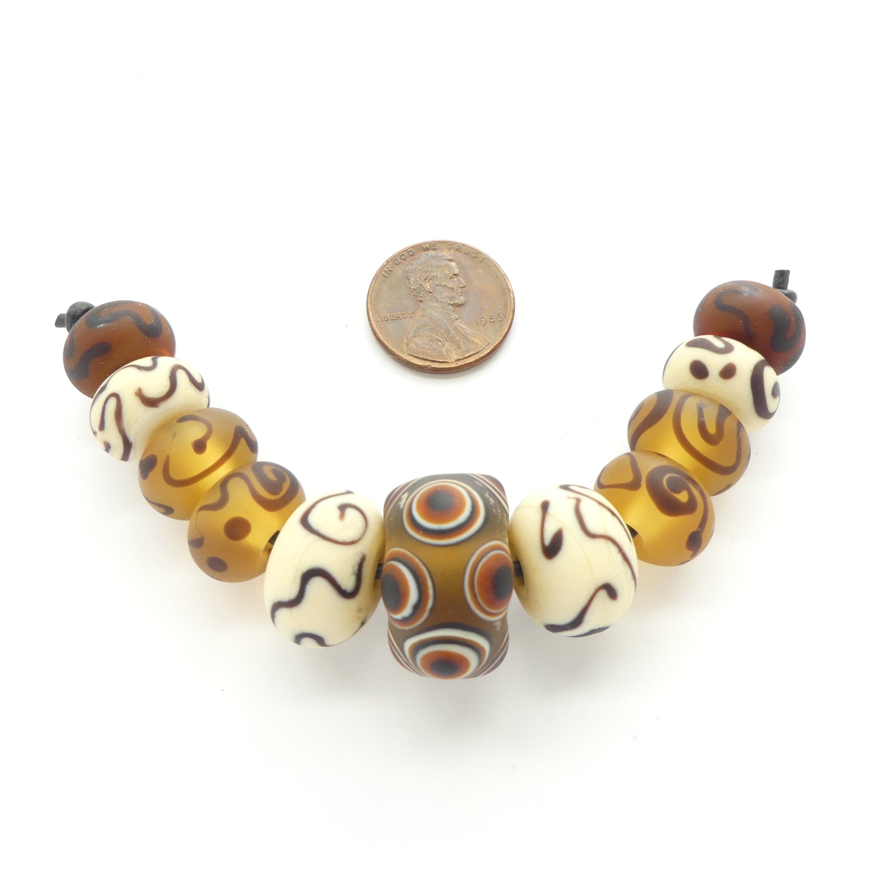 - Set of 11 beautiful contemporary glass beads in earth tones and ivory