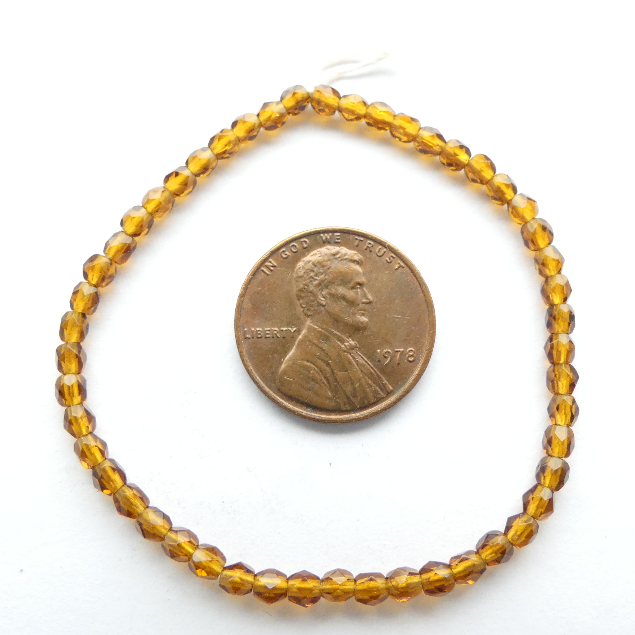 Czech Faceted Glass, 3mm, Dark Amber, Strands of 50 Beads