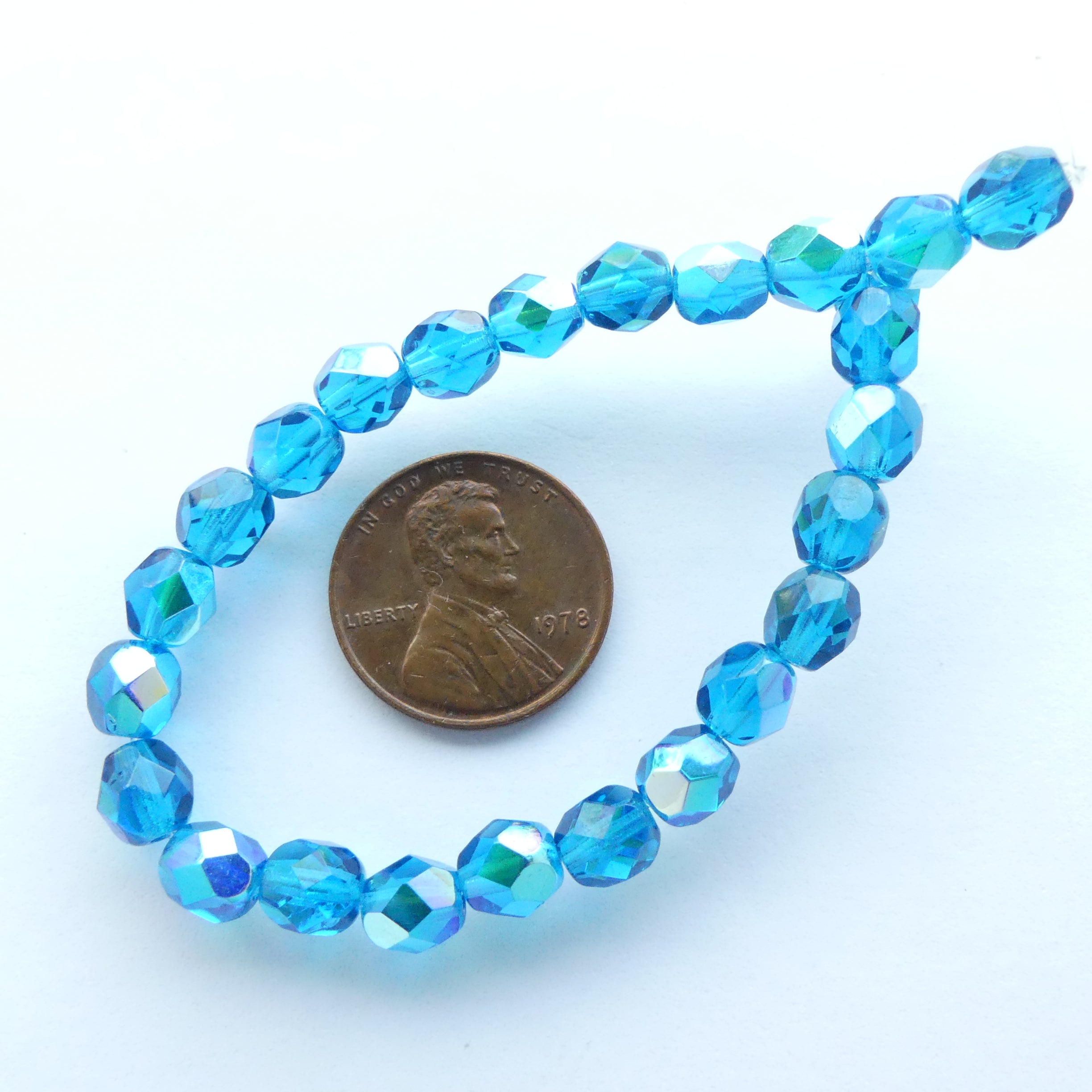 Czech glass faceted, 6mm, Aqua AB, Strand of 25
