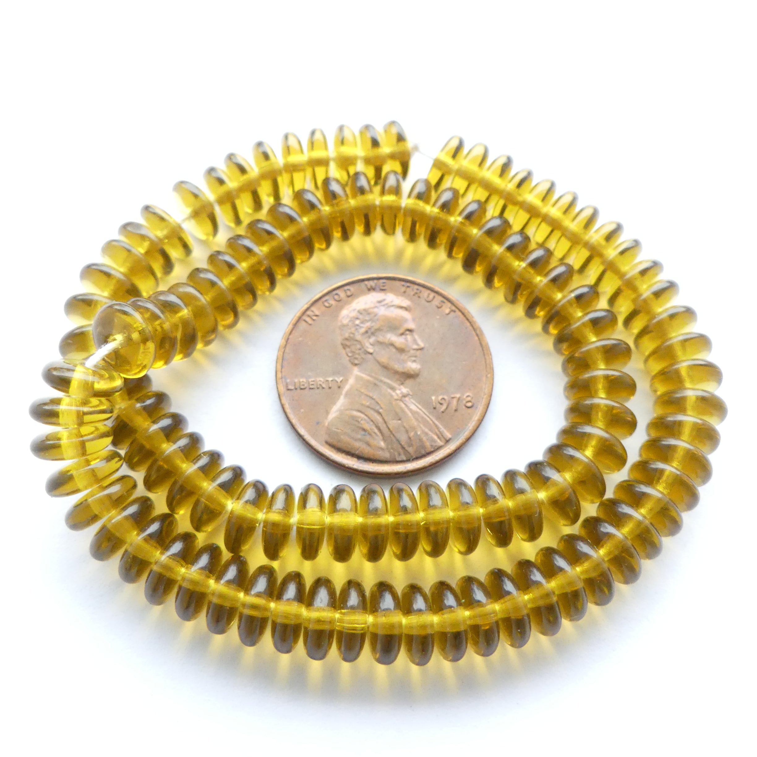 - Czech glass rondelles, 6mm dark olivine (translucent yellow-green)