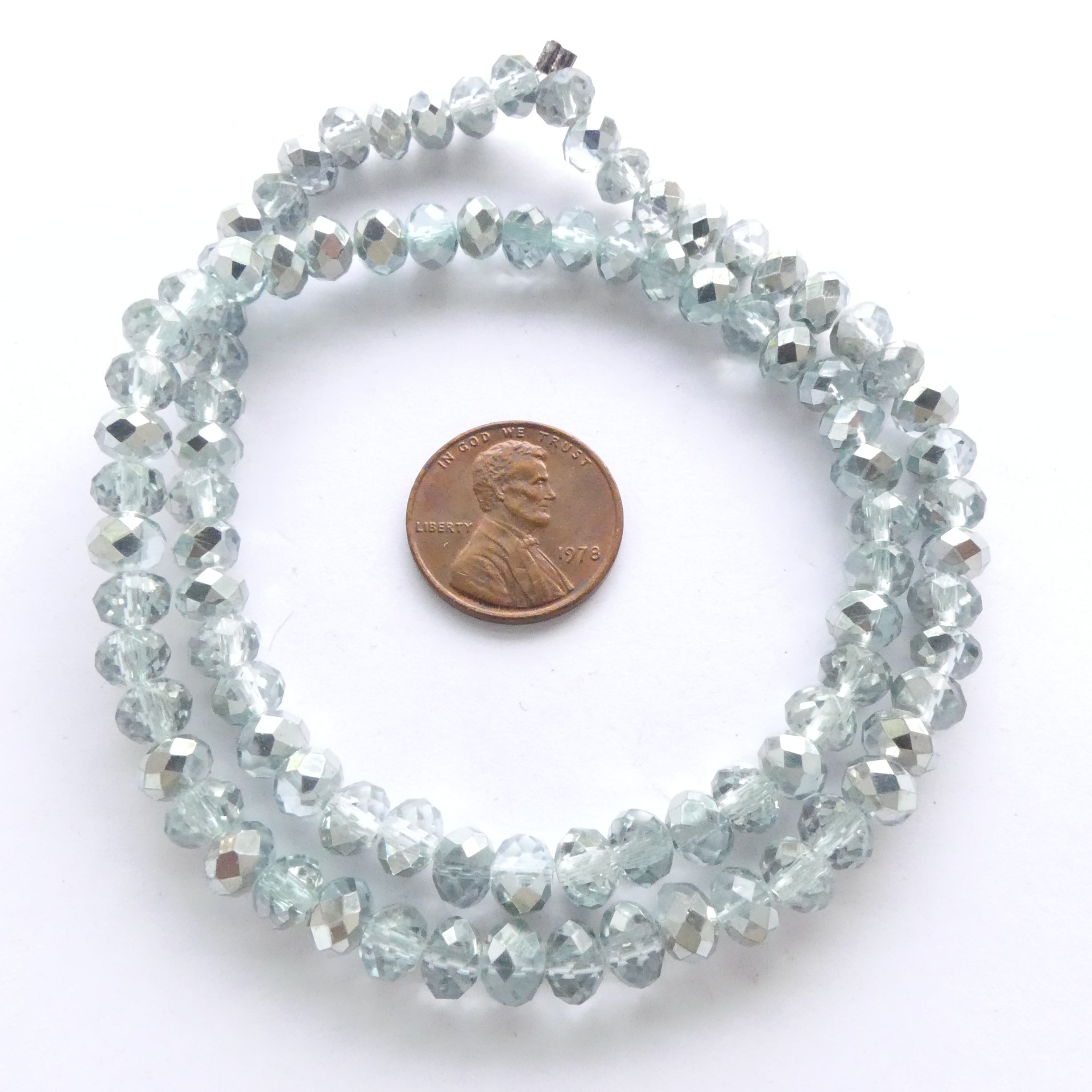Faceted Glass "Dragon Crystal" 4x6mm, Crystal with Silver 1/2 Coating, 16" Strands