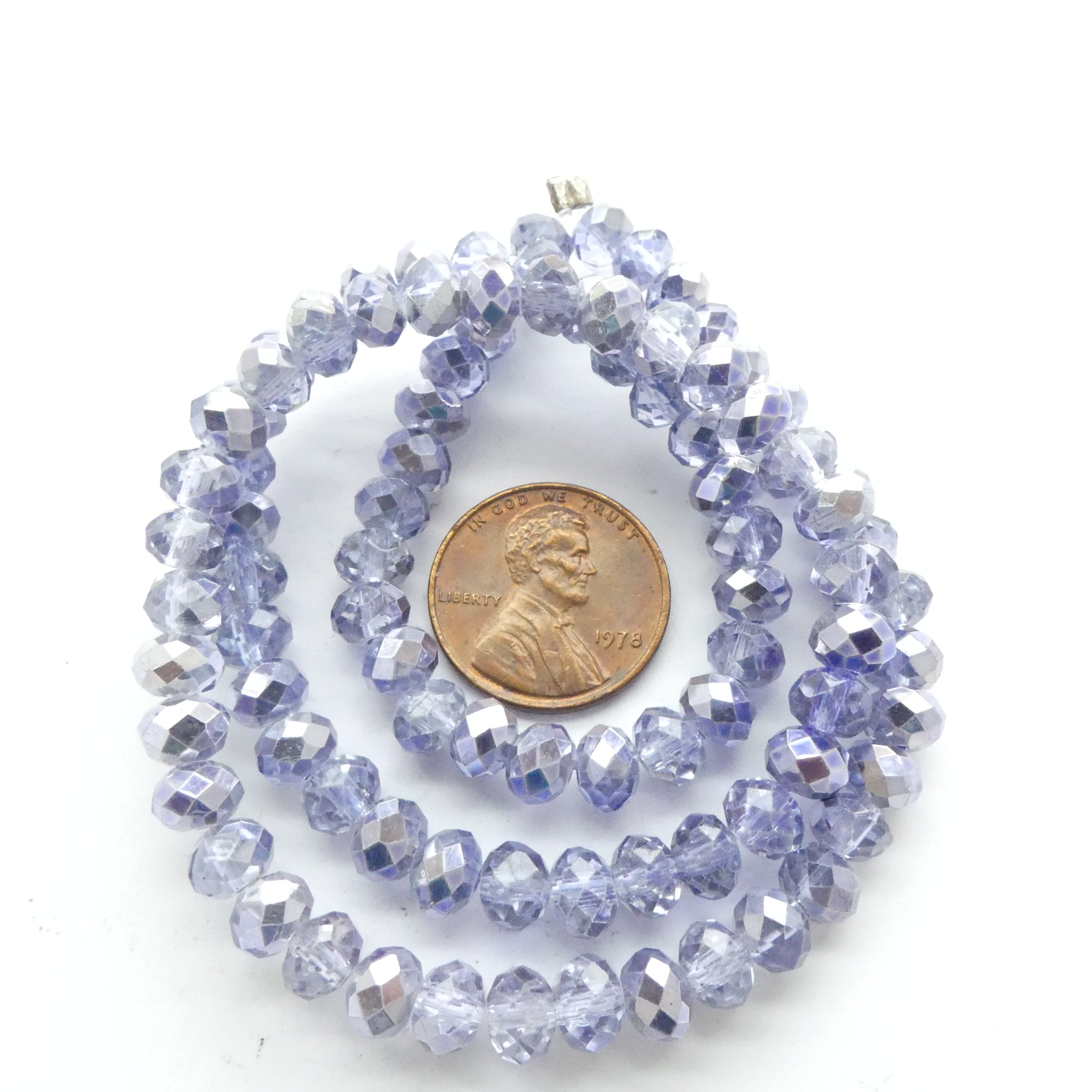 Faceted Glass "Dragon Crystal" 4x6mm, Blue-Violet, Pale with Iris Finish 16" Strand