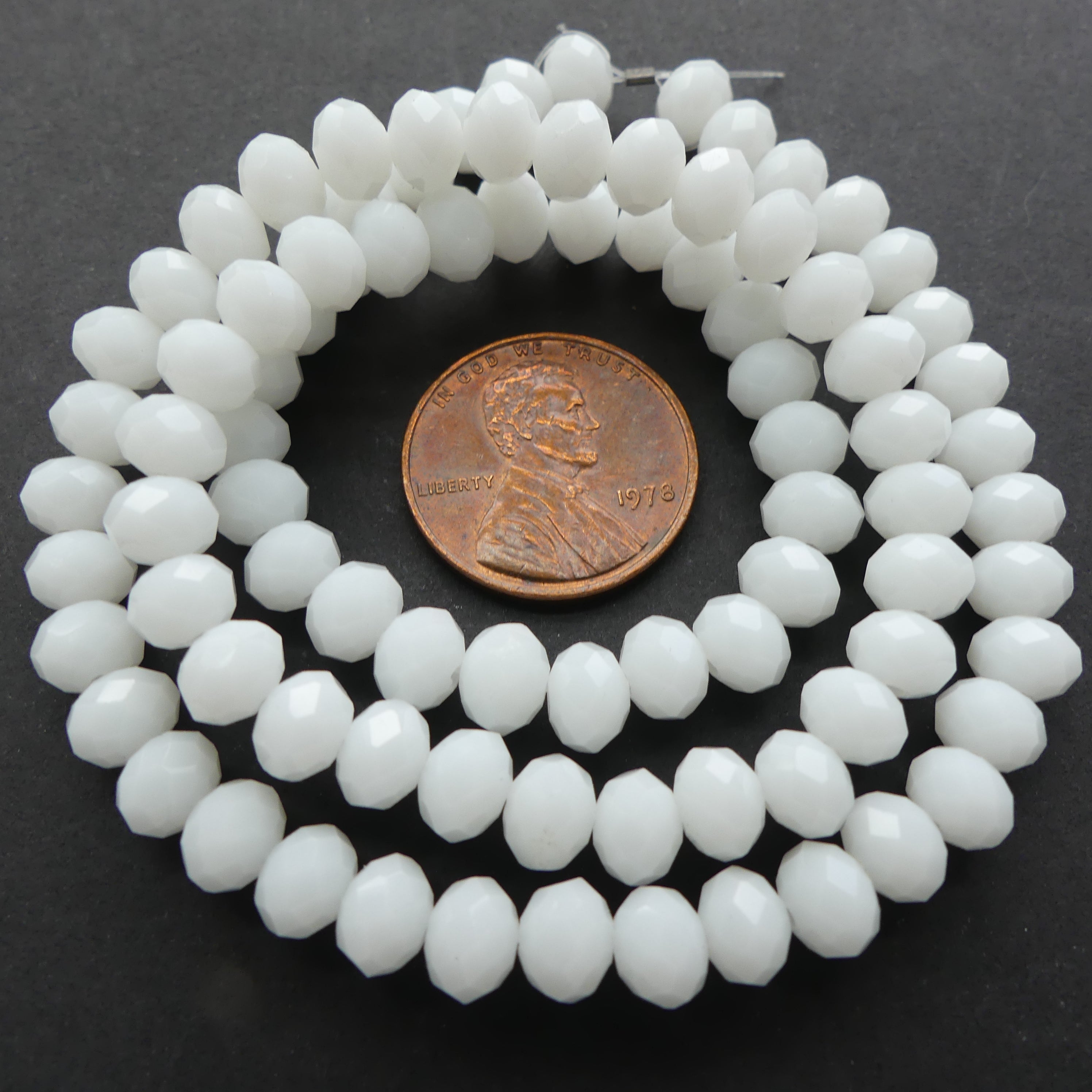 - Faceted glass 4x6mm white opaque Dragon Crystal on 16-inch strands
