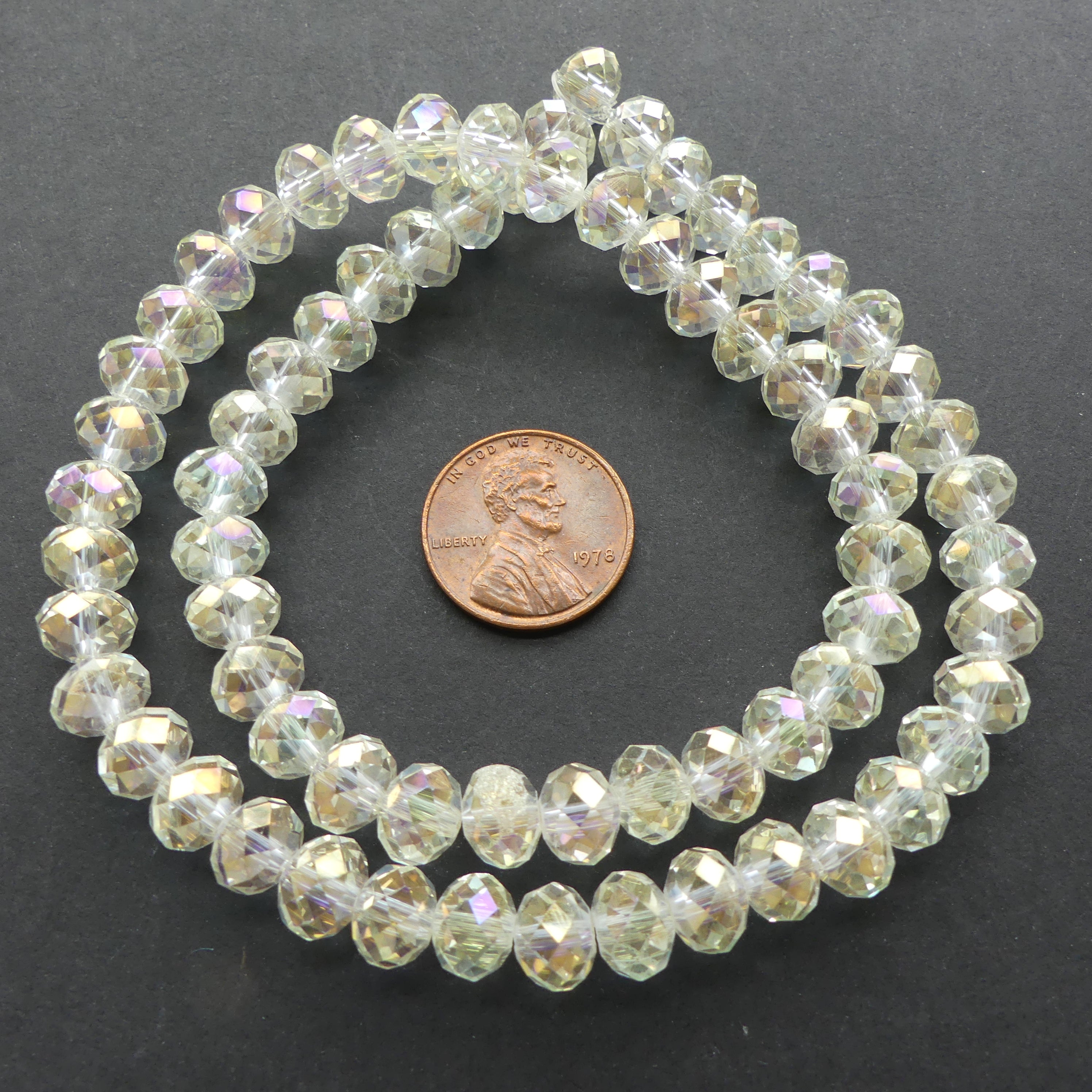 - Faceted glass 6x8mm clear with AB finish Dragon Crystal on 16-inch strands