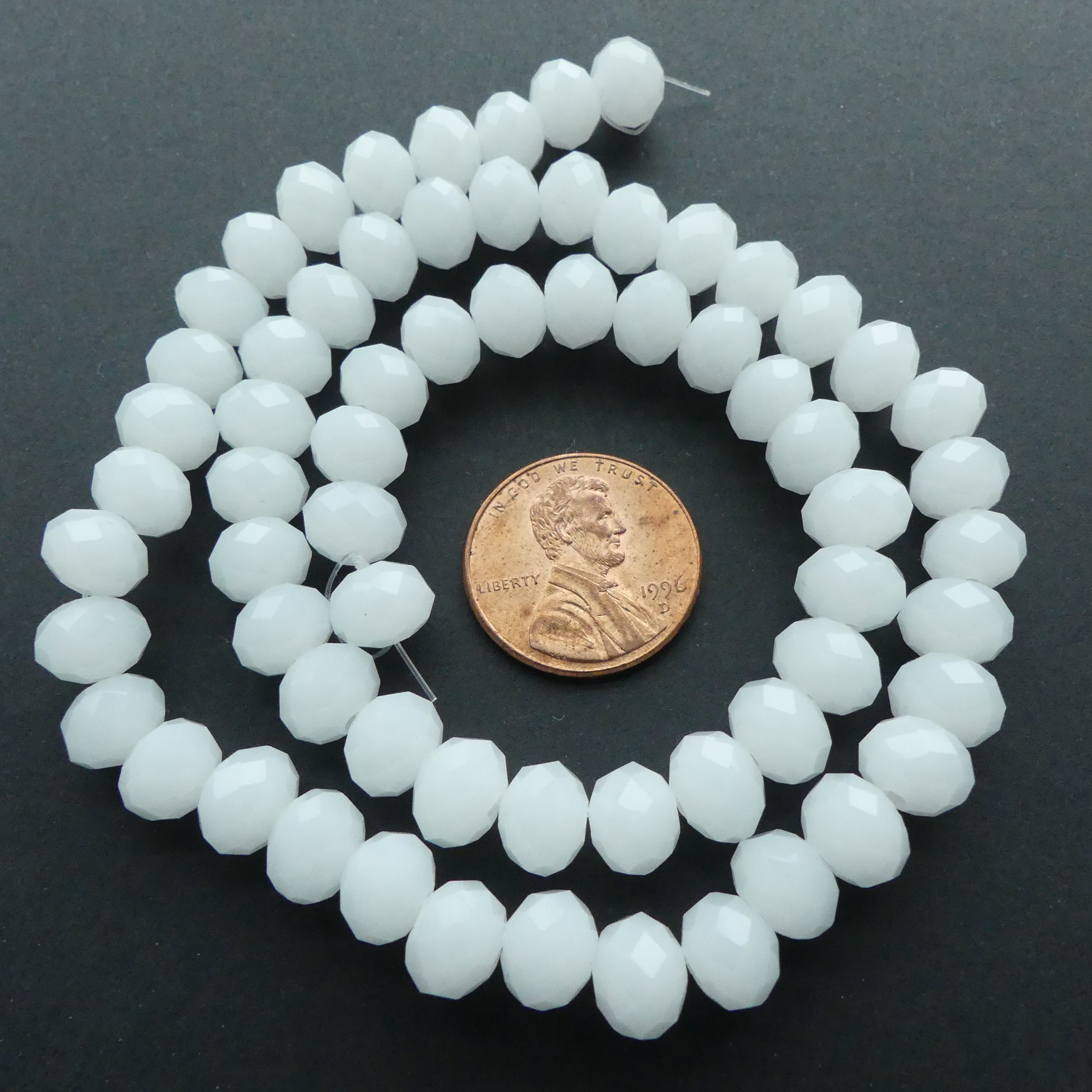 - Faceted Chinese "Dragon Crystal" beads 6x8mm, milky white
