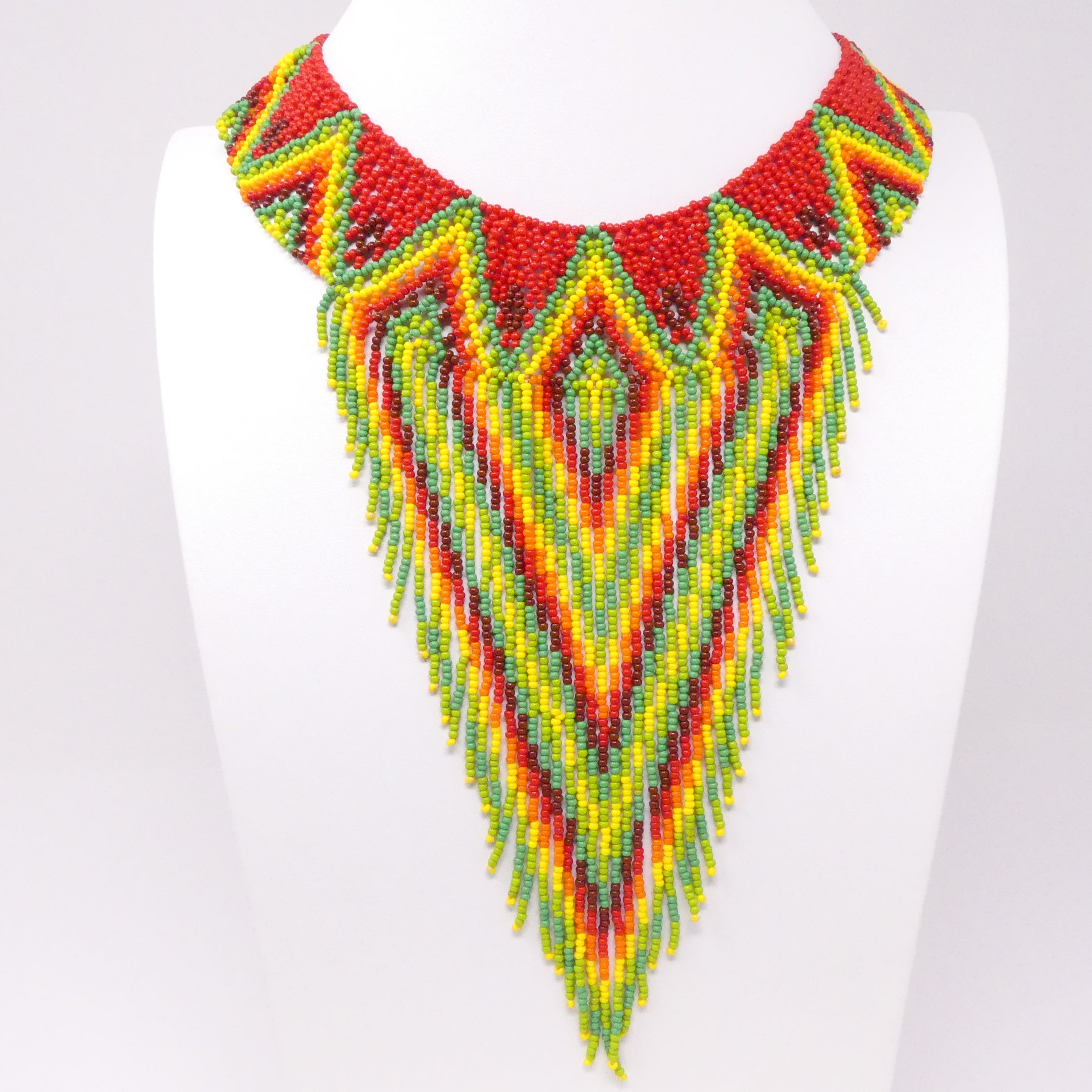 Collar With Fringe, Nativo Style in Red with Green & Yellow, 18" collar plus 7" finges