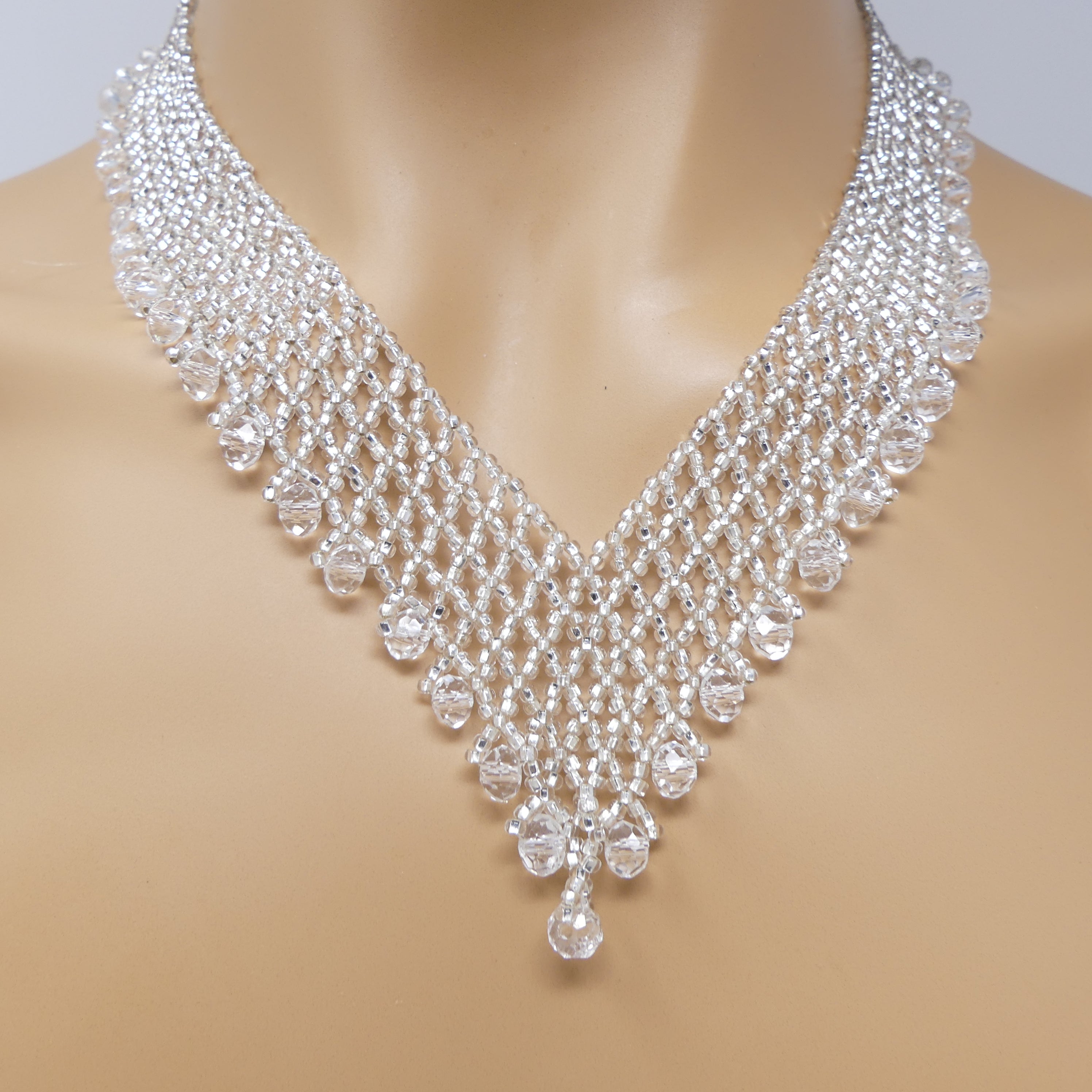 - Webbing of all silver-lined crystal seed beads fringed with clear crystals