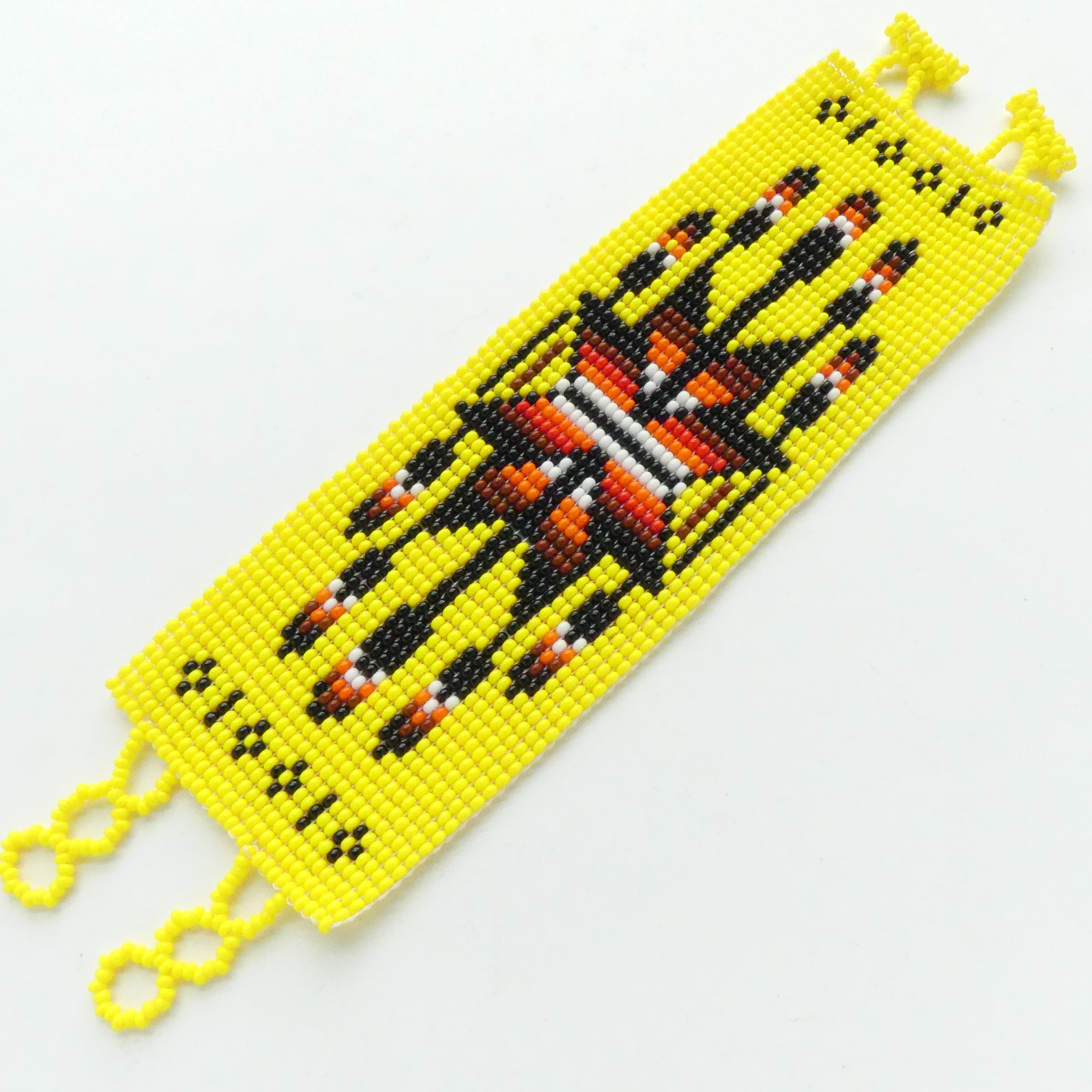 •  Wide Nativo Style bracelet, yellow with star design, 2" inches wide, adjustable from 7 to 8 inches with easy-to-use T clasp for women & men