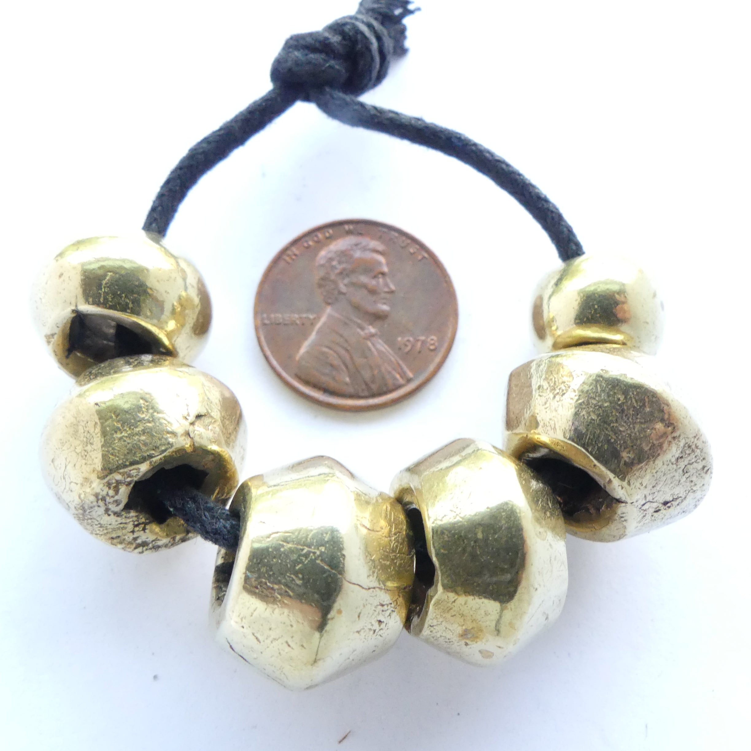 - Set of 6 large, heavy, antique brass bicones from Cameroon