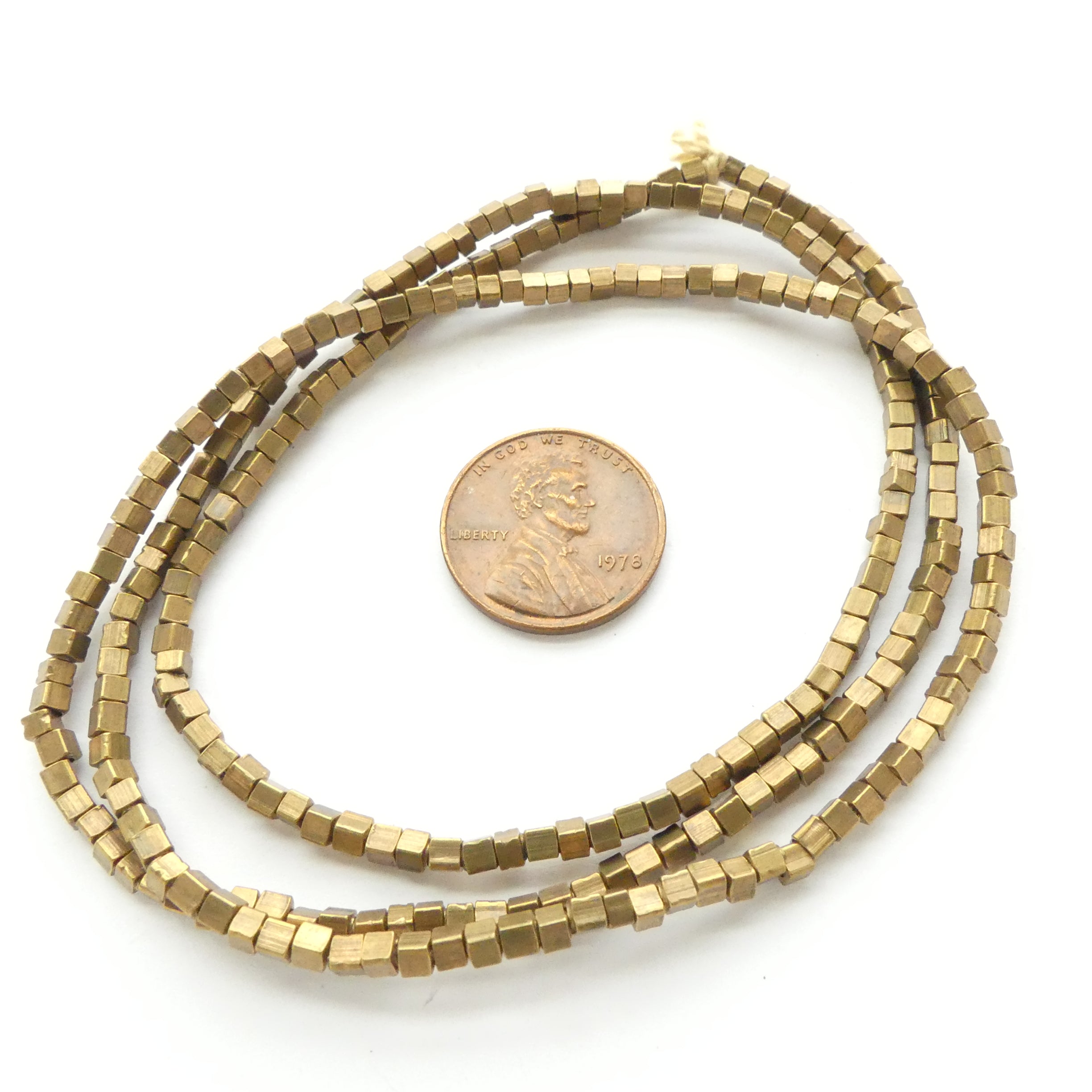 Brass, Cube Beads 2x2mm on 24-inch strand