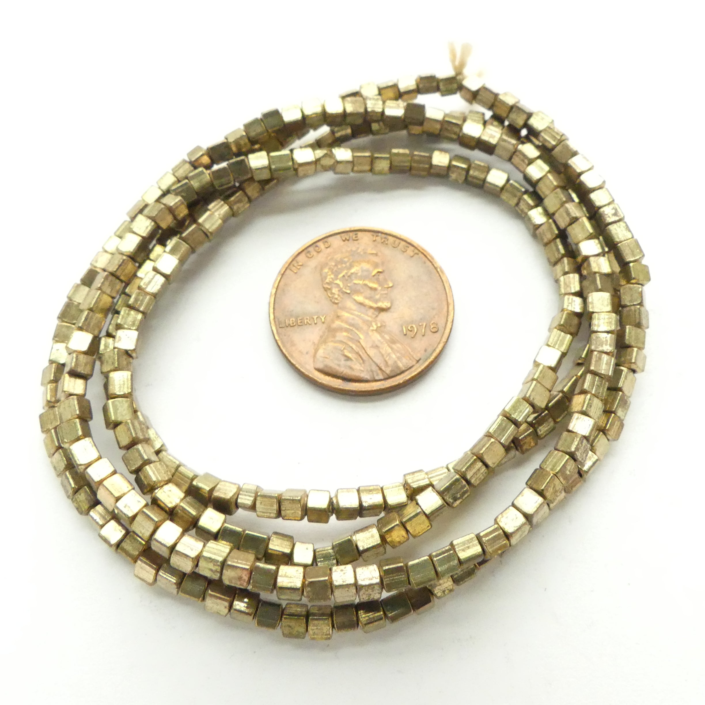 Brass, Cube Beads 2x2mm on 24-inch Strands